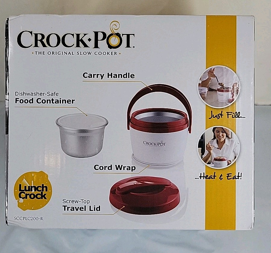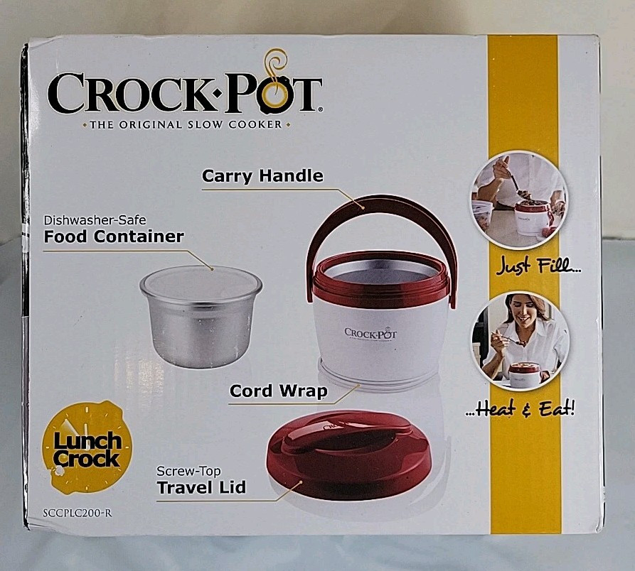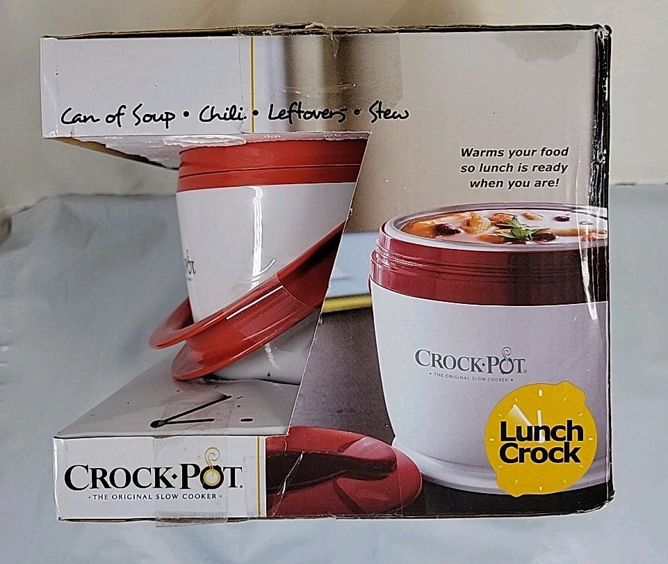 Crock-Pot Lunch Crock New in Box 20oz. White/Red For Can Of Soup Chili Leftovers. New in Box