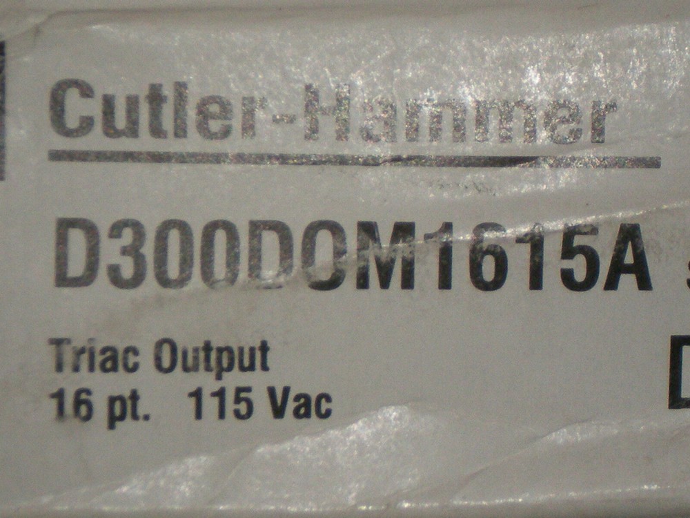 New! Cutler -Hammer D300DOM1615A Triac Output Module 16 pt. 115 VAC 30 day Warranty, Fast Shipping! This is a new Cutler-Hammer output module. The cardboard box is worn but the item looks to be in great shape. Please contact me if you have any questions. If you have any problems, return item to me in the same condition that it was sent to you and I will refund the purchase price (less shipping cost) for 30 days. PAYMENT TERMS and SHIPPING: Payment must be received within 7 business days of end of auction unless other arrangements are made beforehand. Item is guaranteed to ship within three business days, but in most cases item will ship within one business day of payment. Please email me if you need this item rushed. I can ship UPS Overnight in many cases and am willing to use your UPS account number. Contact me with your UPS account number, the type of shipping service (Standard Overnight, AM Delivery, Early AM Delivery) and specify if you desire insurance. Use the link below to find our contact information, or contact me through Ebay. There may be an additional handling fee for Overnight services in cases where the item is paid for later in the afternoon (contact me for details). Foreign buyers are responsible for all customs charges. Foreign buyers please provide a contact phone number to be used on the customs form. INDEMNITY: Buyer shall, at no expense to the Seller, indemnify, defend and hold the Seller harmless against any and all losses, damages and expense (including punitive damages, multiple damages, attorney fees and other costs of defending any action) Seller may incur as a result of any claim made against the Seller by any person, including without limitation, Buyer, it's successors, assigns, representatives, agents, employees, insurers, and customers, actually or allegedly arising out of the regarding the transportation, installation or use of the equipment sold hereunder by Seller or out of any products manufactured or sold by Buyer, including, without limitation, any claim which in whole or in part actually or allegedly arises out of (a) Seller's negligent or other wrongful act or omission, (b) danger or default in any equipment sold by Seller to Buyer, (c) infringement by Seller of any patent, copyright, or trade secret relating to any equipment sold by Seller to Buyer. Shelf Unit B15 Listing and template services provided by inkFrog