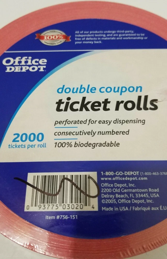 New Double Coupon Ticket Rolls - Office Depot - Raffles - Contests