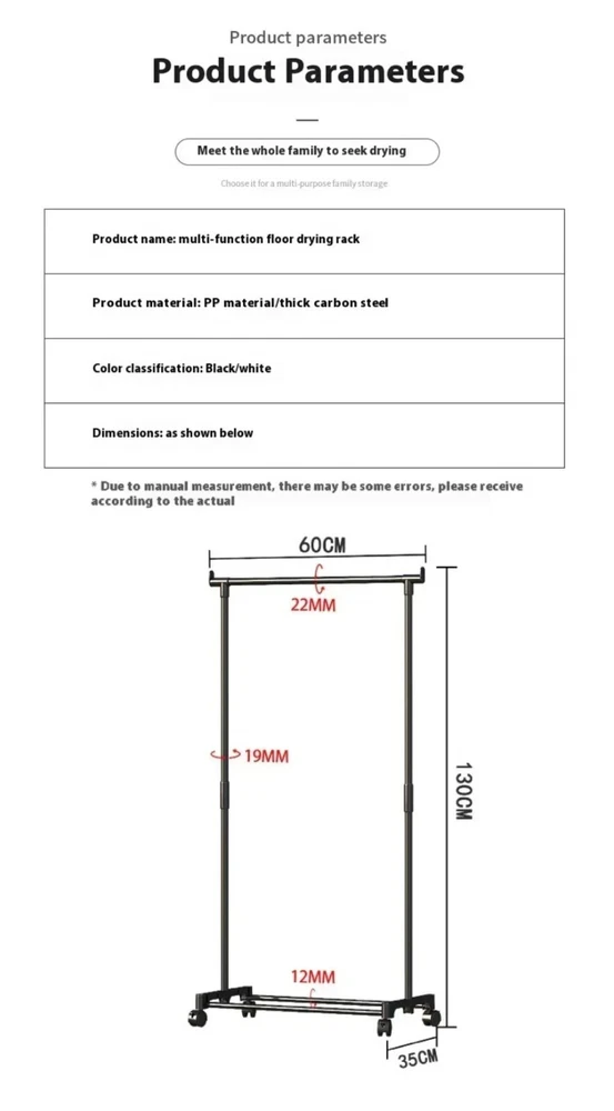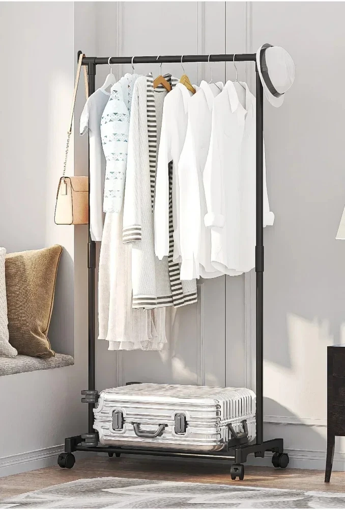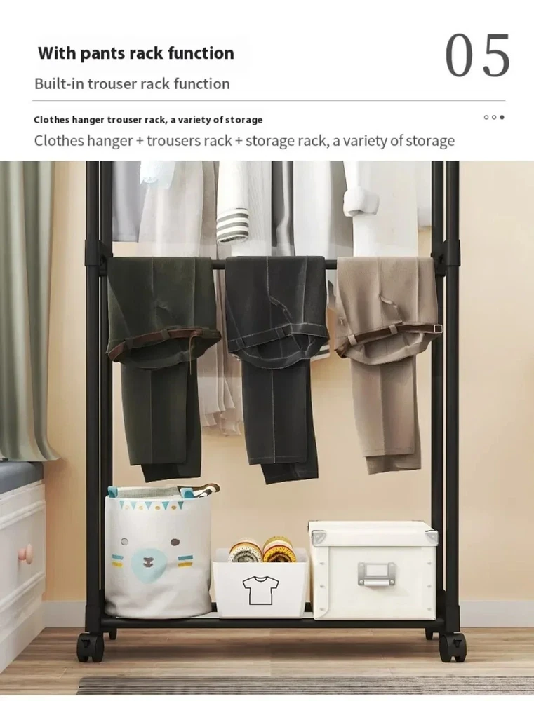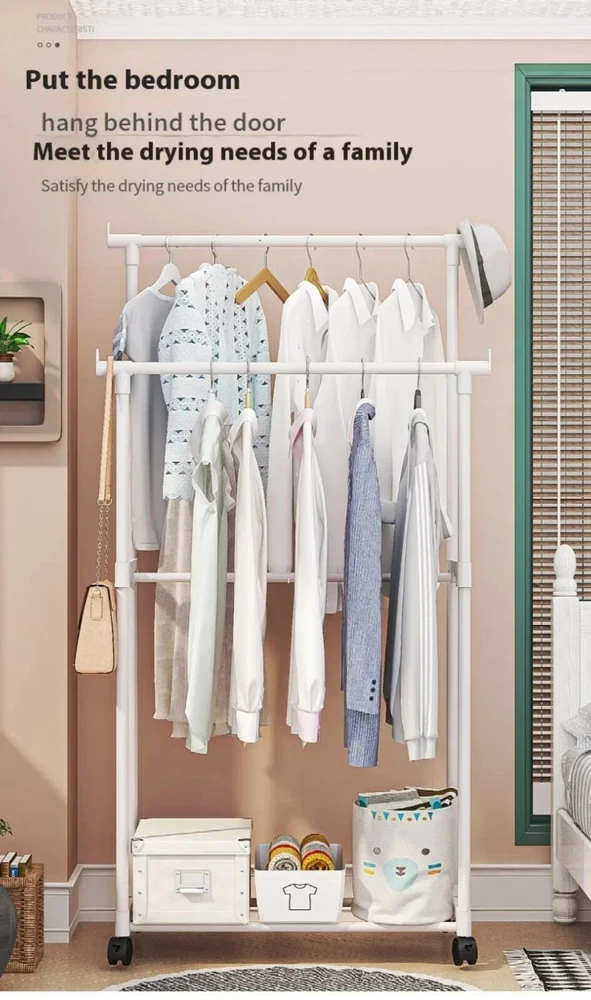 New Movable Coat Rack - Double Clothes Shelf for Bedroom | Fast Shipping Movable Coat Rack Double Simple Rod Clothes Racks Floor-Standing Bedroom Multifunctional Clothes Wheel Clothing Storage Rack Item Description: Name: Clothes Rack Material: PP plastic+painted pipes Feature: 【Large Storage Space】- Double rod can meet different length of clothing. The bottom shelf can also put multiple pairs of shoes, but also can put blankets, storage bags and other items. So that the daily organization is more orderly. 【Strong & Durable】- The hanging bar is strong and durable. The whole bar can be hung and placed all kinds of clothing. Support rods on both sides not only make the clothes rack more stable, but also provide storage space for scarves and towels. 【Move or Stay】- The 360° rotating wheels make it easy to move this hanger anywhere with just a gentle push, and the wheels can be braked in place to lock it in place when stability is needed. 【Modern Design】- Unique garment design, suitable for cloakroom, porch, living room, bedroom, balcony, office and other places. Simple and versatile, will not make mistakes. Package:1*Clothes Rack Note: 1. Due to manual measurement, the size may have some errors 2. Color may vary due to different monitors class="extend--iframe--to7hHIV" data-spm-anchor-id="a2g0o.detail.0.i3.14d0asyRasyR0u" data-spm-act-id="a2g0o.detail.0.i3.14d0asyRasyR0u" style="box-sizing: border-box; -webkit-tap-highlight-color: transparent; outline: 0px; margin: 0px; padding: 0px; height: 27391.2px; position: absolute; top: 0px; visibility: hidden; width: 1000.5px; z-index: -1;">