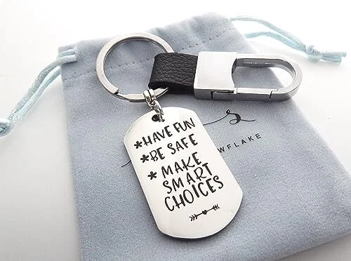 Return Policy Fast Delivery Trusted seller New Driver Have Fun Drive Safe Keychain Teenage Driver Keychain Sweet 16 Daughter Son Graduation Key Ring Gifts 16th Birthday Product Description Have Fun Drive Safe Make Smart Choices - Perfect gift for any College Student or Military Member Graduation Gifts, High school graduation gift, Duaghter or Son Gift, Driver's licese gift, Christmas and Birthday Gift. 16th Birthday Gifts Shipping Returns Payment Shipping Shipping is FREE to all addresses other than APO/PO boxes in the lower 48 states. All our stock ships from US-based warehouses. Shipped via USPS or UPS (depending on location and package weight) Unless stated otherwise, all orders will ship within 24-72 hours of your payment being processed. Check our feedback to see the great reviews of FAST shipping we offer. Returns Seller does not accept returns Payment We currently accept payment via eBay managed payments only. Once payment is cleared, we will dispatch your shipment within 1-3 business days. Please refer to the "Shipping" tab for more information regarding shipping speed to your destination.