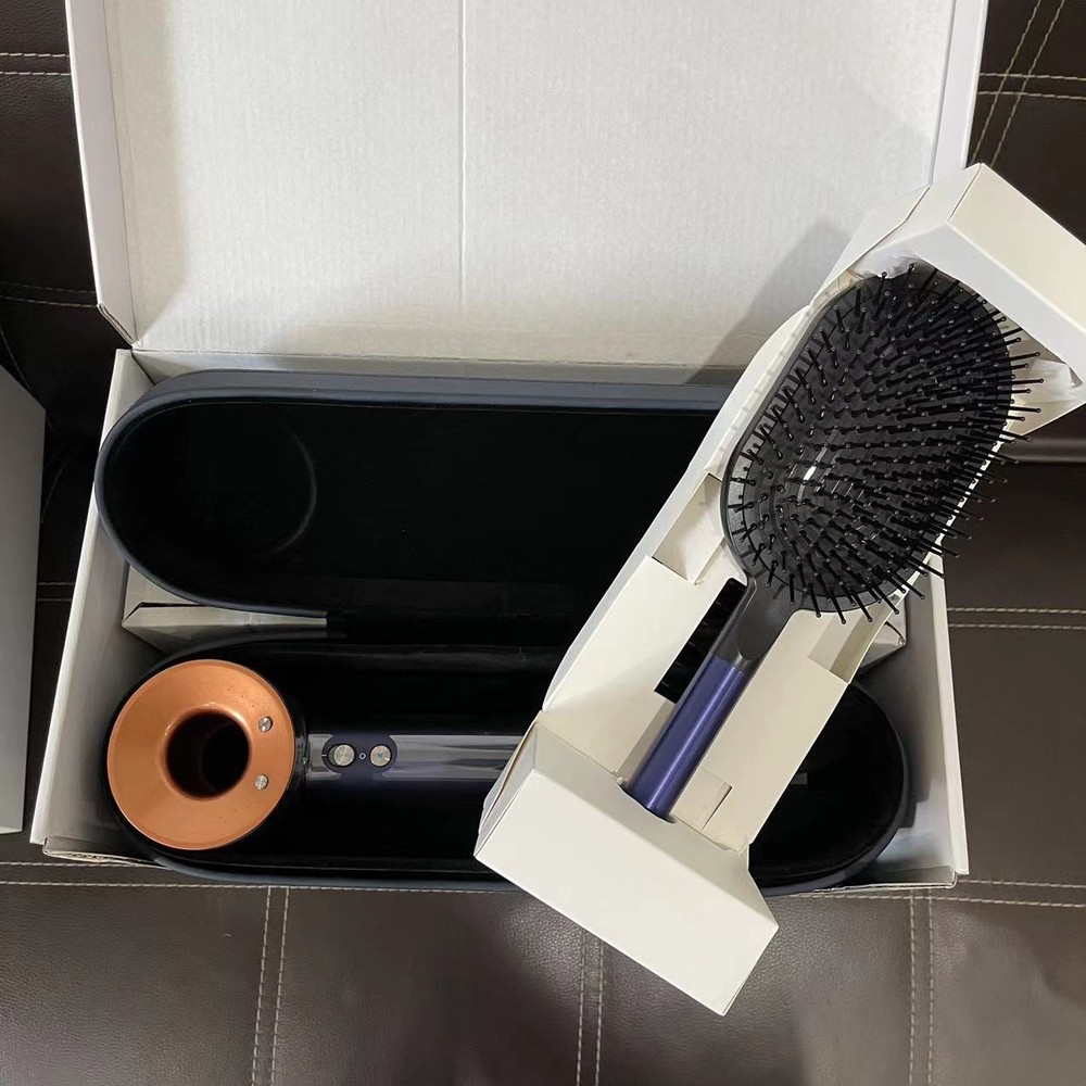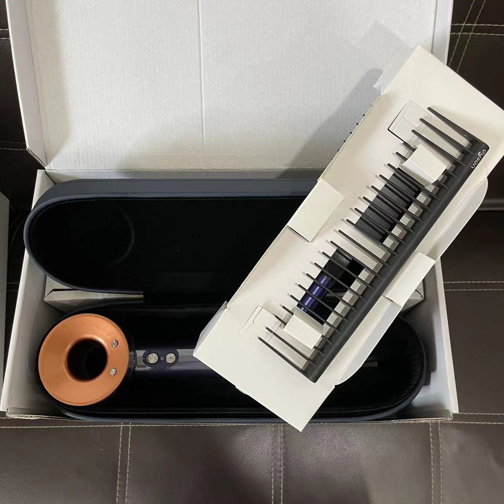 Dyson Supersonic Special Edition 1600W Hair Dryer - Prussian Blue/Rich Copper Brand New Sealed Limited Stock Fast drying. No extreme heat. Now with the new Flyaway attachment. Five attachments to style your hair your way. This Gift Set includes a Dyson-designed Prussian blue presentation case. Engineered for different hair types After rigorously testing different hair types in our laboratories, we've engineered a range of attachments designed to style different types of hair. And because we're constantly evolving our machines, we've developed a new Flyaway attachment. Powerful digital motor. Designed for fast drying. The small, powerful Dyson digital motor V9 is, on average 6x faster than other hair dryer motors*. Combined with Air Multiplier technology, it produces a high-pressure, high-velocity jet of controlled air, for fast drying and precision styling. Intelligent heat control protects hair from heat damage. Unlike some others, the Dyson Supersonic hair dryer measures air temperature over 40 times a second, and regulates the heat. This helps prevent extreme heat damage, to protect your hair's shine. Engineered for balance We've turned convention on its head and put the motor in the handle. Completely rebalancing the dryer's weight and shape. Magnetic attachments The Dyson Supersonic hair dryer comes with magnetic styling attachments. For easy fitting and rotation during styling. Dyson Flyaway attachment Inspired by professional stylists, the new Flyaway attachment harnesses the Coanda effect to lift longer hairs and hide flyaways. Giving you a smooth, salon finish*, at home. Dyson Styling concentrator Creates a high-velocity blade of air that's perfect for styling. And because the air is focused, you can style one section at a time - without disturbing the rest. Dyson Diffuser Disperses air more evenly around your curls and simulates natural drying, helping to reduce frizz and define curls and waves. Longer prongs allow you to style your hair with greater control – and reach deeper into the hair. Dyson Gentle air attachment Engineered to be kinder to fine hair and sensitive scalps, the new Gentle air attachment diffuses the air, creating a gentle, cooler airflow - whilst still drying hair fast. Extreme heat can cause colour fade. The Dyson Gentle air attachment operates at a lower temperature to help prevent colour loss. Negative ions help reduce static. Dyson Wide tooth comb attachment Helps shape and lengthen curly and textured hair as it dries. Acoustically Tuned The powerful motor is tuned to produce one inaudible frequency. And it's enveloped by a vibration reduction system. 3 precise speed settings High - for fast drying and styling Medium - for regular drying Low - for diffusing 4 precise heat settings 100°C - fast drying and styling 80°C - regular drying 60°C - cooler drying and diffusing 28°C - constant cold Cold shot 28°C cold shot, to set your hair after styling Included in the box Supersonic hairdryer Flyaway attachment Styling concentrator Diffuser Gentle air attachment Wide-tooth comb
