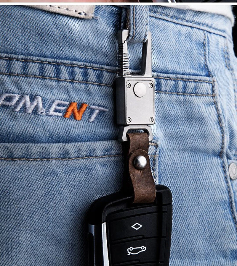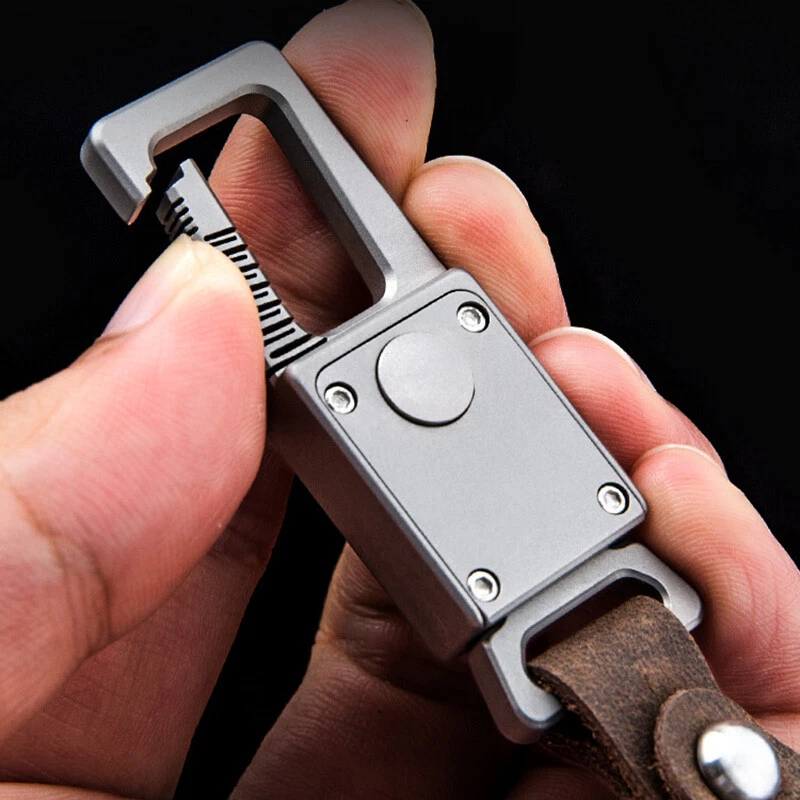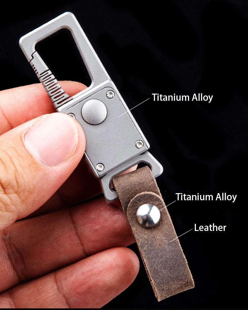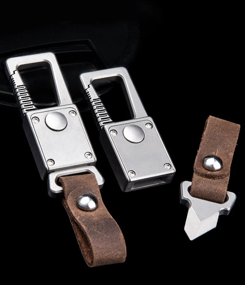 New EDC Titanium Alloy Leather Car Keychain Multi Tools Carabiner Quick Open Key
