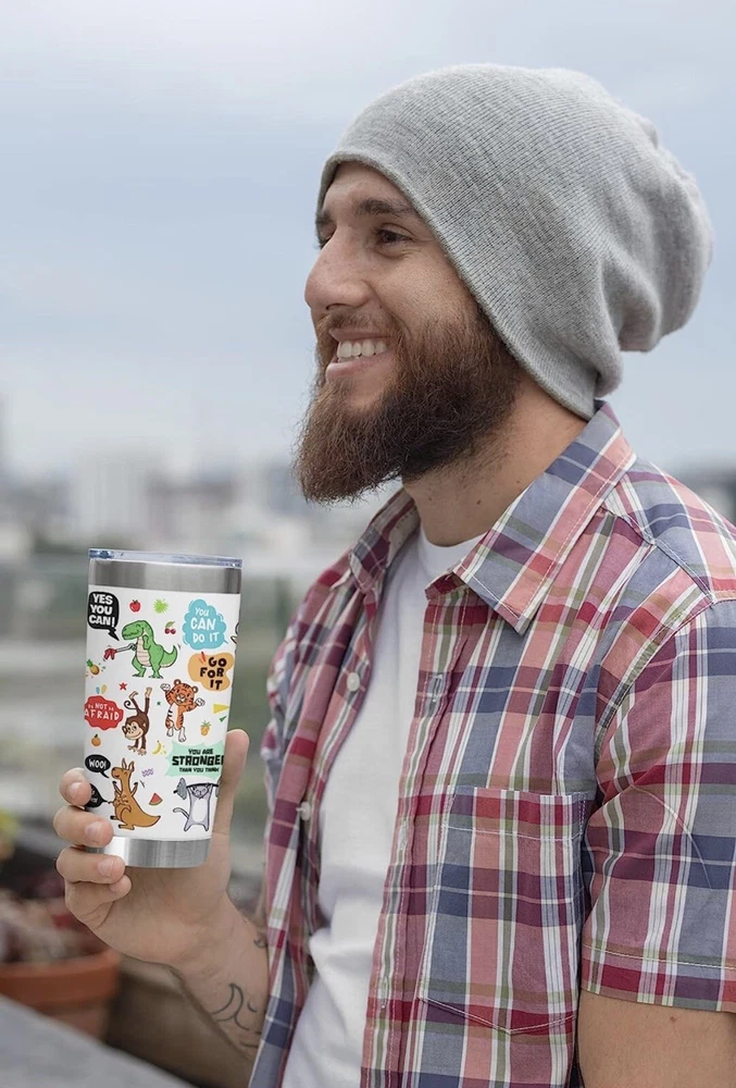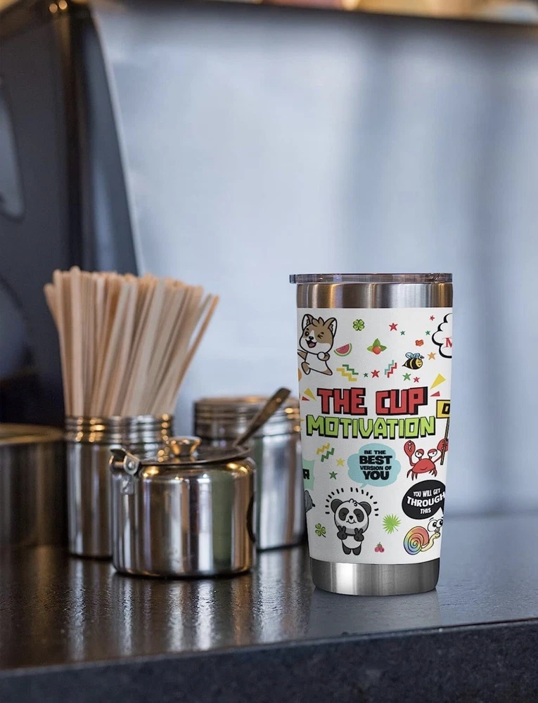 New Eleven The Cup Motivation Friends 20oz Tumbler Stainless Steel Double Wall. Farewell, New Job Gifts For Coworkers - Motivational, Birthday, Thank You Gifts For Men, Women, Friends - 20Oz Tumbler About this item THE PERFECT MOTIVATIONAL GIFT - Our insulated tumbler has the words "The Cup of Motivation" 3D printed on it along with other inspirational phrases, making it a great gift for your friends and family. A GIFT FOR ANY OCCASION - This cool tumbler for men and women is a thoughtful gift for any celebration. Hand it out during birthdays, Christmas, Thanksgiving, or any other day of the year! DOUBLE WALL VACUUM INSULATION – We use double-wall insulation to help retain hot and cold liquid temperatures, which makes our tumbler also great for water, coffee, cola, beer, juice, tea, ice cream, cocktails and more. BPA FREE AND DURABLE – These tumblers come with BPA-free, convenient drink lid. Crafted with 18/8 food grade stainless steel these tumblers are durable, unbreakable, sweat proof, rust resistant and perfect for backyard barbecues, hanging out at the pool, or enjoying a hot day at the beach with friends. COWORKER LEAVING GIFTS, GOING AWAY GIFT FOR COWORKER - Enjoy Your Favorite Drinks No Matter Where You Are With This Stainless Steel Tumbler. Sturdy And Leak-proof, It’s Great For Both Outdoor And Indoor Use. Bring This Tumbler With You Next Time You Go To A Picnic, Hiking Adventure, Rv Tour, Beach Outing, Or Fishing Trip.