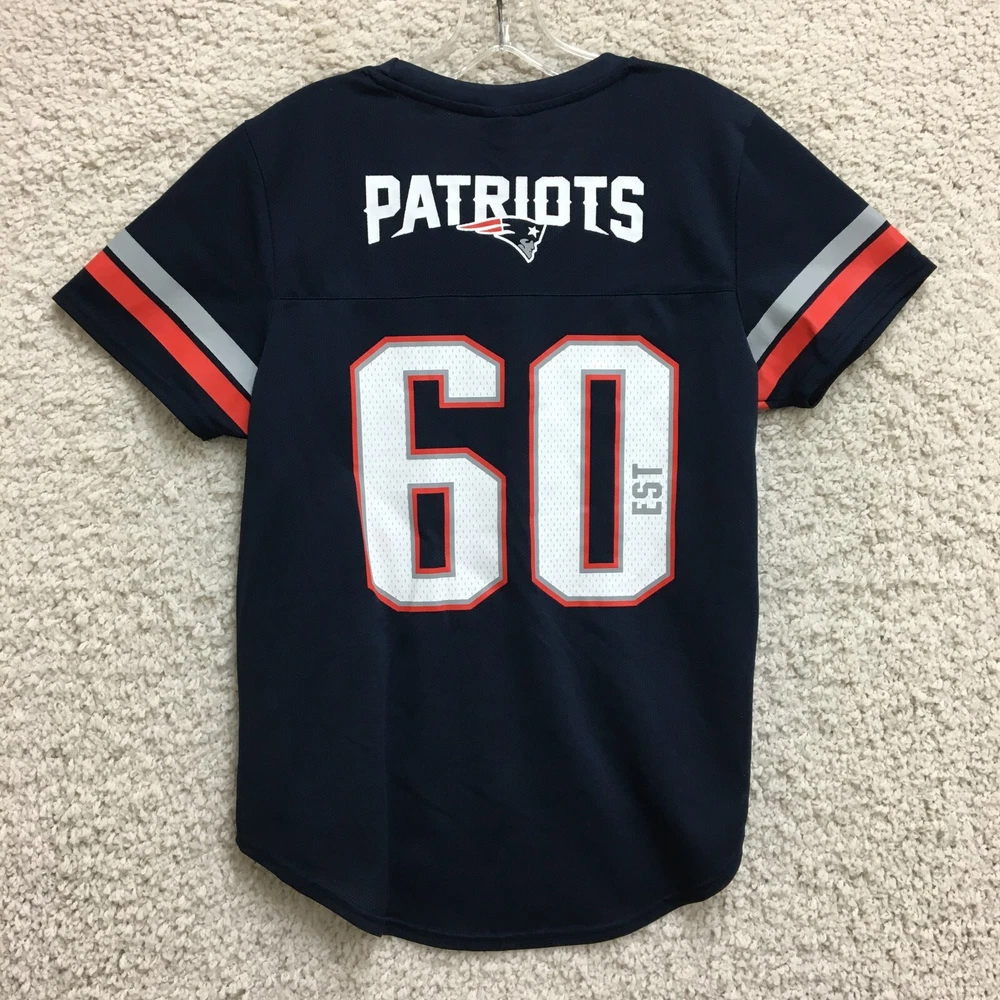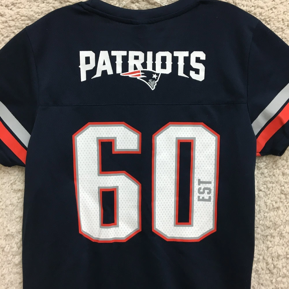 New England Patriots Jersey Large Adult Blue NFL Team Apparel #60 Logo Womens L