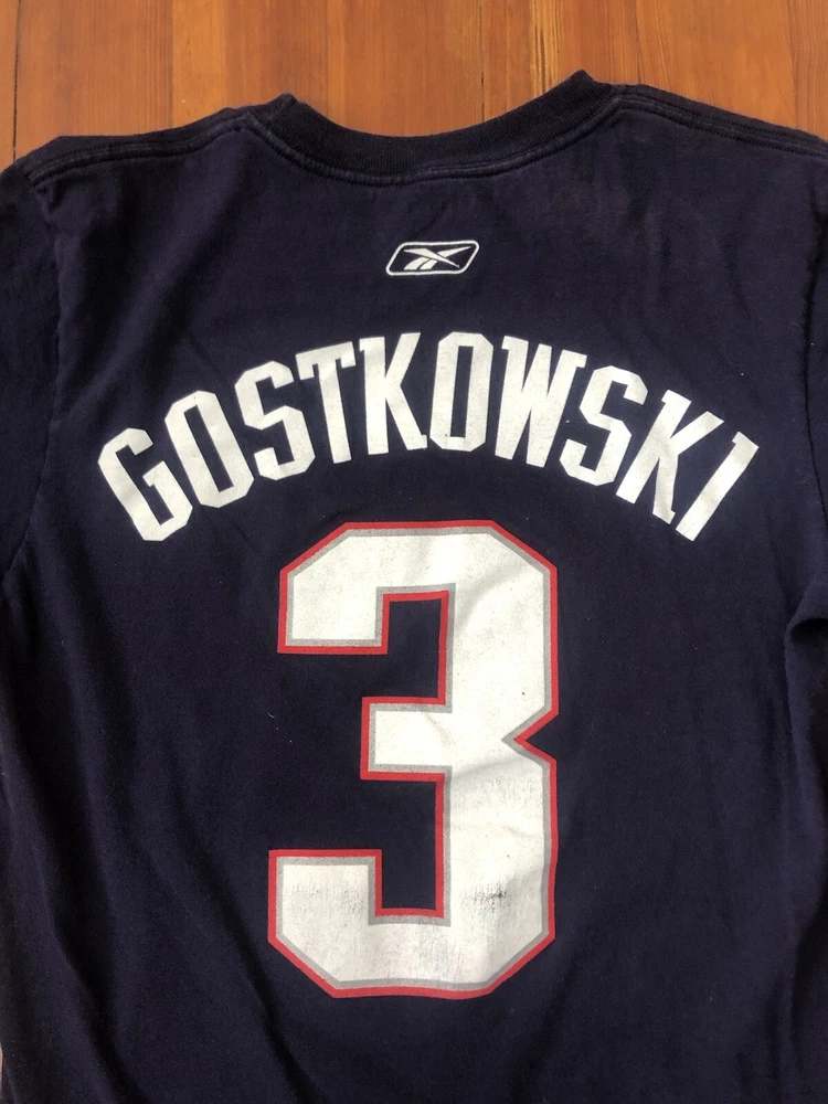 New England Patriots Stephen Gostkowski #3 Men’s Reebok Navy T-Shirt Size - Medium See measurements in listing pictures Condition - Preowned Please view listing pics for review of condition. Minor wear/fading/discoloration to shirt and silk screen pattern from natural use and washing. Heavier wear/fading to “3” on back of shirt - pictured. A few loose threads. I make every effort to list and describe any/all condition issues with items. Items are sold in “as is” condition. Please inspect photos carefully to ensure there are no flaws overlooked and not specifically mentioned in the listing details. Buying vintage or preowned items comes with the inherent risk that items are not perfect and not in “like new” condition. Please ask for additional pictures of specific area of concern. All sales are final. No returns/refunds/exchanges. Shipping charges for USPS First Class Mail are $4.50 and USPS Priority Mail are $9.99. Item ships from Massachusetts. Item ships within 2 business days of payment.
