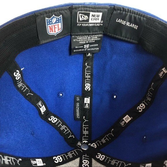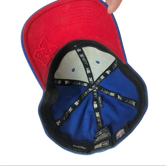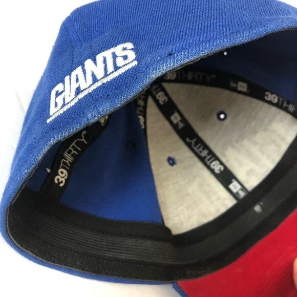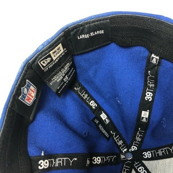 New Era 39Thirty Mens NFL New York Giants Blue Cap White Embroidered Fitted Size L/XL. E lastic band to adjust fit Condition: Good some wear as shown in photos! Item is clean no odors! Thank you for stopping by!
