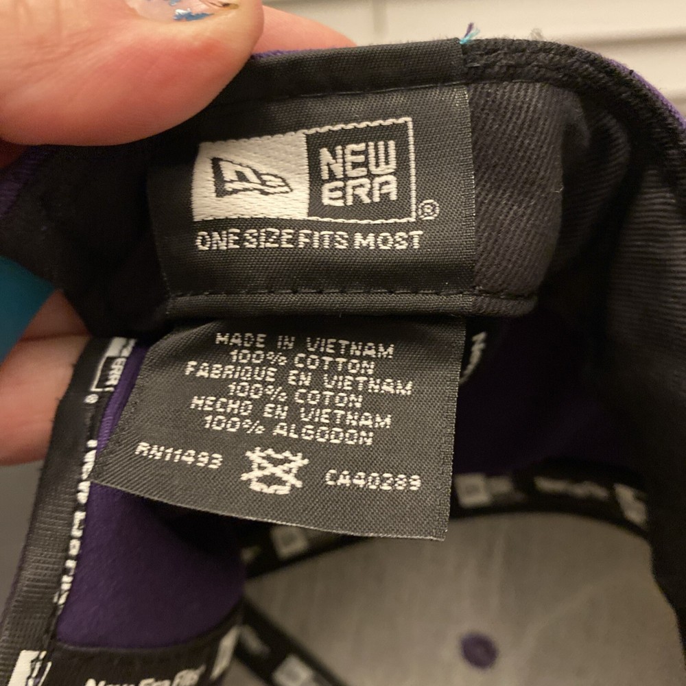 The New Era Charlotte Hornets Snapback Cap is an officially licensed NBA fan apparel featuring the team's logo on a purple cap. This unisex adult-sized hat is perfect for basketball fans looking to show support for the Charlotte Hornets in style.