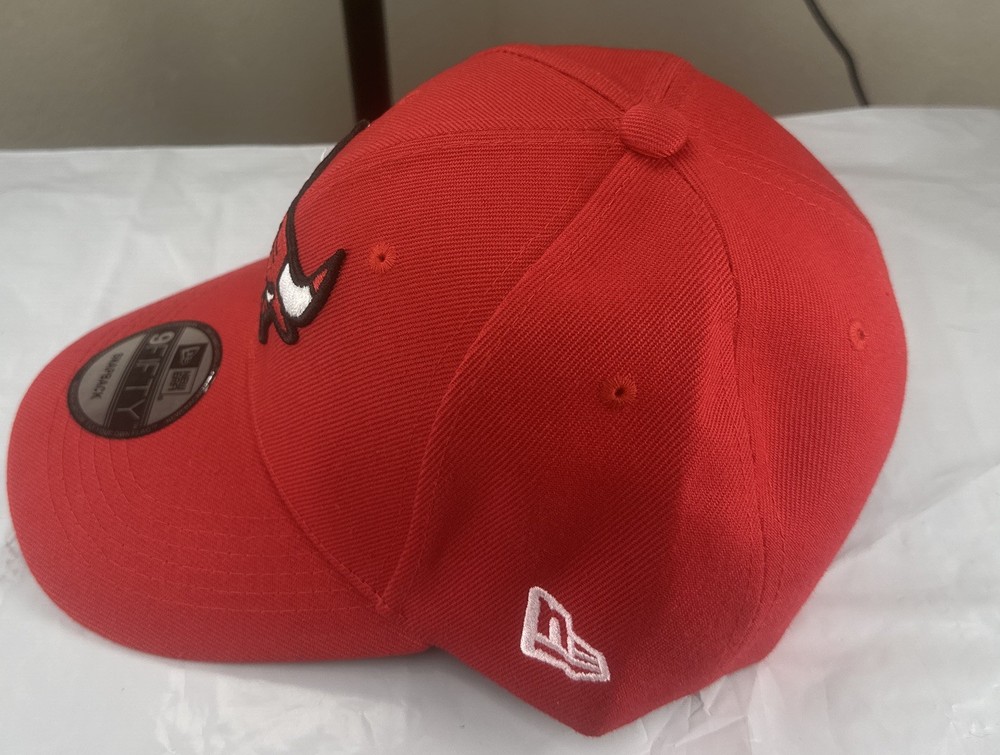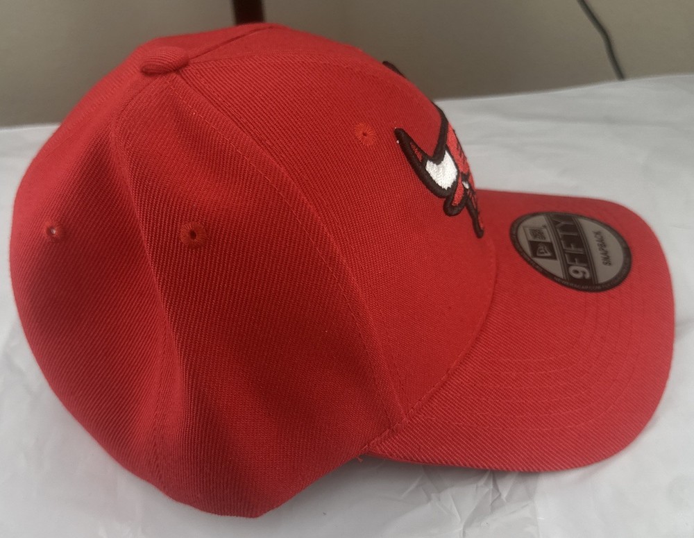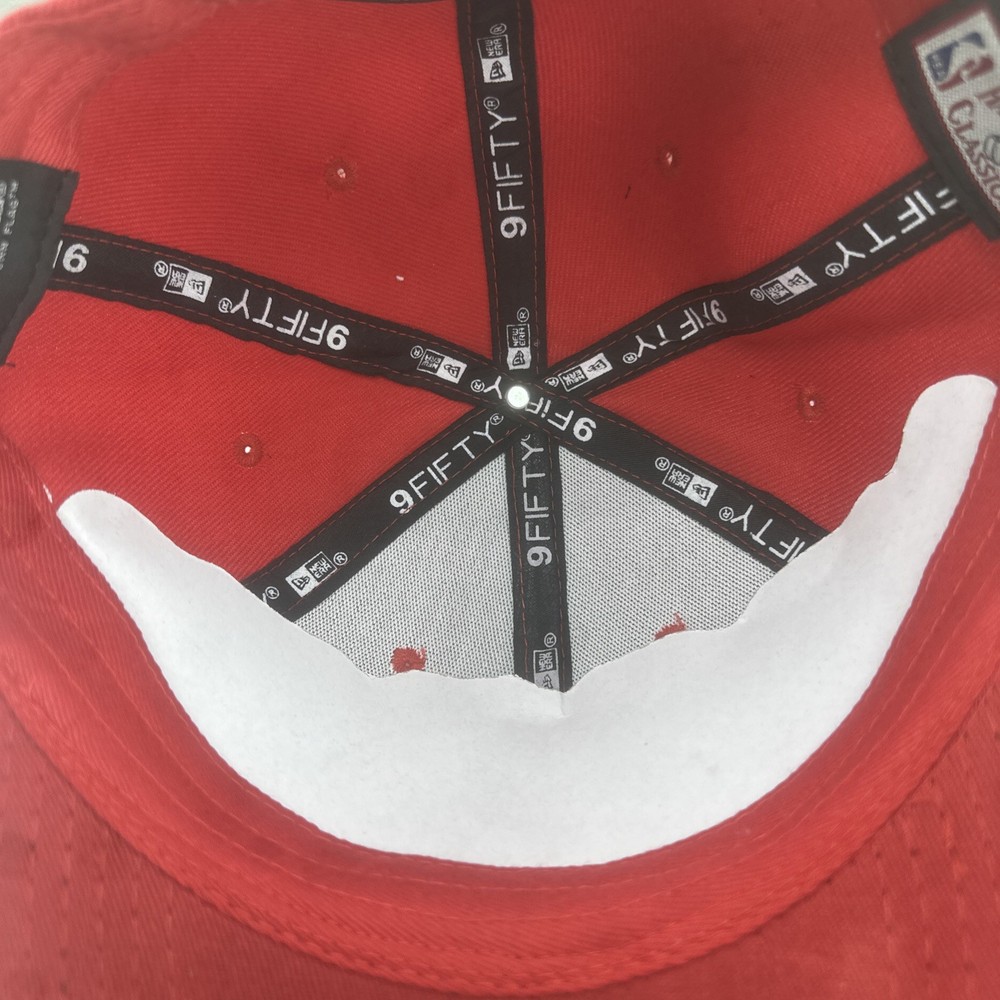 The New Era Chicago Bulls 9 Fifty Red Strapback Cap is a stylish and officially licensed hat perfect for any NBA fan or Michael Jordan enthusiast. Made by the trusted brand New Era, this unisex adult cap features the iconic Chicago Bulls team logo on the front in a bold red color. This snapback cap is designed for game day or everyday wear, making it a must-have accessory for any fan looking to represent their favorite basketball team in style. Whether you're attending an NBA tournament or just want to show off your team spirit, this cap is the perfect choice.