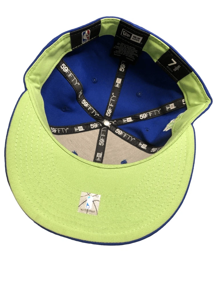 New Era Golden State Warriors Pop Citrus 59FIFTY Hat cap Size 7 5/8 - New with tags - Blue/ Gold/ Green - Fitted 7 5/8 - Embroidered 6x NBA Finals Champs patch and new era on sides, NBA logo on back, and Golden State Warriors patch on front - 6 Panel construction with embroidered eyelets - Fitted hat - High crown; flat bill - Green brim of hat - Durable polyester blend fabric