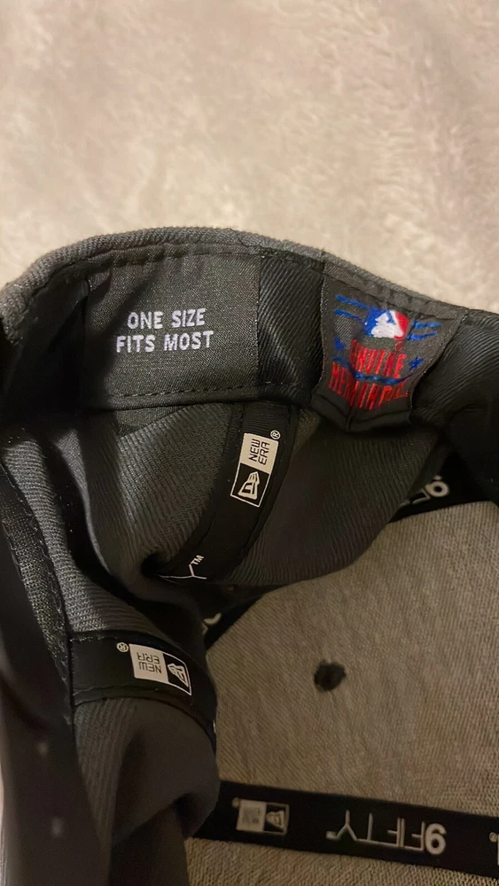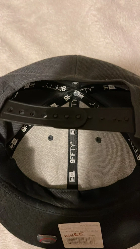 This is a gray New Era baseball cap for men with the NY logo. It is one size fits all and comes with the original tag attached. Priced at $25, this hat is brand new and has not been worn.