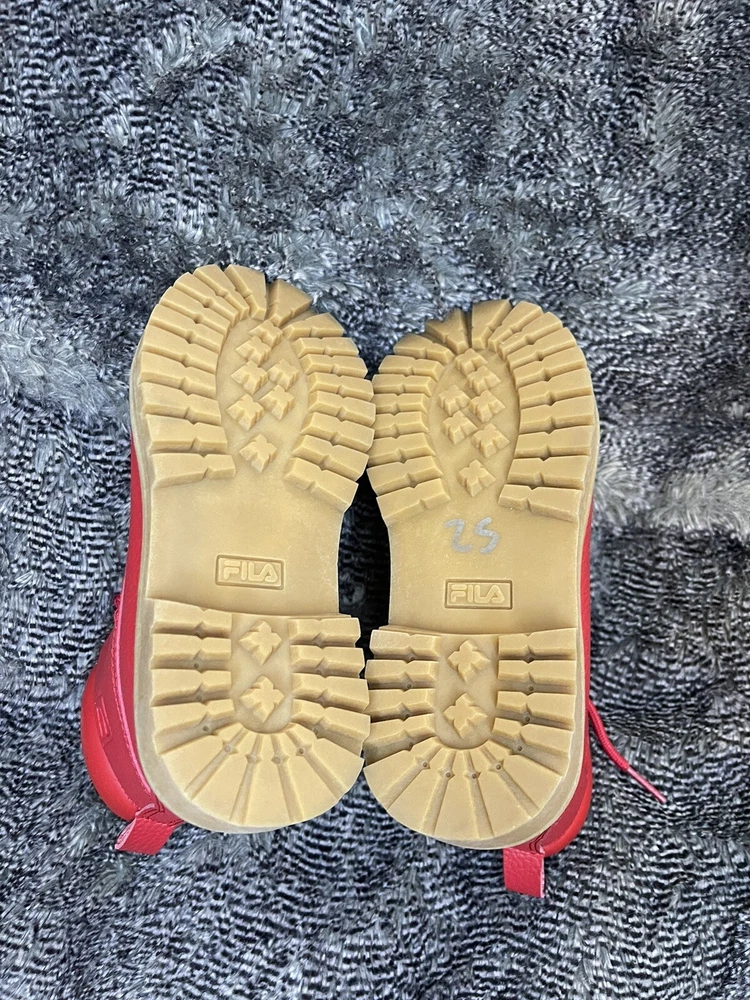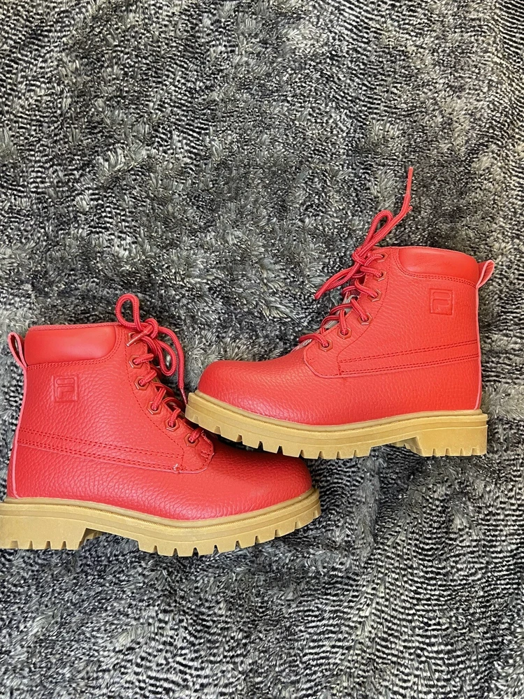 Get your hands on the latest FILA Diviner boots, perfect for any occasion. These boots feature a round toe shape and lace-up closure for a comfortable fit. The synthetic upper material and textile lining ensure durability and comfort, while the rubber cleat type provides excellent traction. These boots are perfect for any season, with a moderate cushioning level and features such as cushioned, lined, and padded. The embroidered logo adds a touch of style to these combat-style boots. Ideal for walking, riding, school, typing, skiing, hiking, and running & jogging. Don't miss out on these limited edition boots, get yours now.