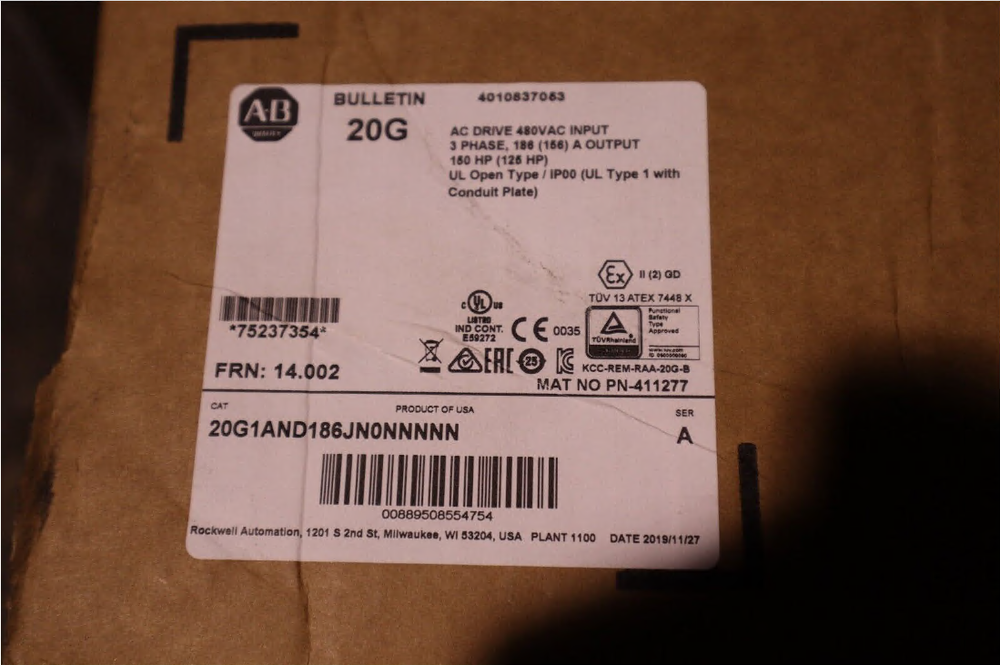 Store Categories Store Categories 755 AC Drive 753 AC Drive Servo Motor( VPL MPL MPM) 70/700/700S AC Drive Smart Motor Controller Other New Factory Sealed Allen-Bradley 20G1AND186JN0NNNNN 755 AC Drive Fast delivery Product Description MPN 20G1AND186JN0NNNNN Brand Allen-Bradley Model 20G1AND186JN0NNNNN PowerFlex 755 AC Drive, with Embedded Ethernet/IP, Standard Protection, Forced Air, AC Input with Precharge, no DC Terminals, Open Type, 186 Amps, 150HP ND, 125HP HD, 480 VAC, 3 PH, Frame 6, Filtered, CM jumper installed (preferred), None, Blank (No HIM) More Items About Shipping Return Policy Warranty More Items As an independent distributor of NEW surplus industrial automation items. We buy and sell: Allen Bradley, Siemens, Schneider, Omron, Delta and any other listed manufacturers. All brands, logos, and trademarks identified herein are the property of their respective owners and used solely for identification purposes only. We have developed our own global sourcing relationships with End Users, independent distributors, auction houses, independent contractors and procure our equipment through such sources. All items we sell are 100% NEW. IF you need something that does not list on eBay, Please just leave us a message and we will try to find them by our own global supply chain. About Shipping 1.All USA warehouse parcels will be shipped within 1 work day by USPS Or UPS,Fedex according to your location and parcel weight. 2.IF buyer need them in a hurry, Please choose :UPS 2nd Day Air (USA warehouse ONLY)) and contact to pay the difference. Return Policy 1.If you receive a defective item which you want to return, please contact us when you receive the item. 2.All return items must be returned with its original packaging and accessories. If we confirm the damage happened during the shipment, we will bear the shipping cost for return. 3.We will refund the money to you when we get the return items. Or replace item for you free of charge. Warranty All items we sell are 100% NEW and we provide 1 year warranty after purchase. Copyright © 2023 Dianxiaomi