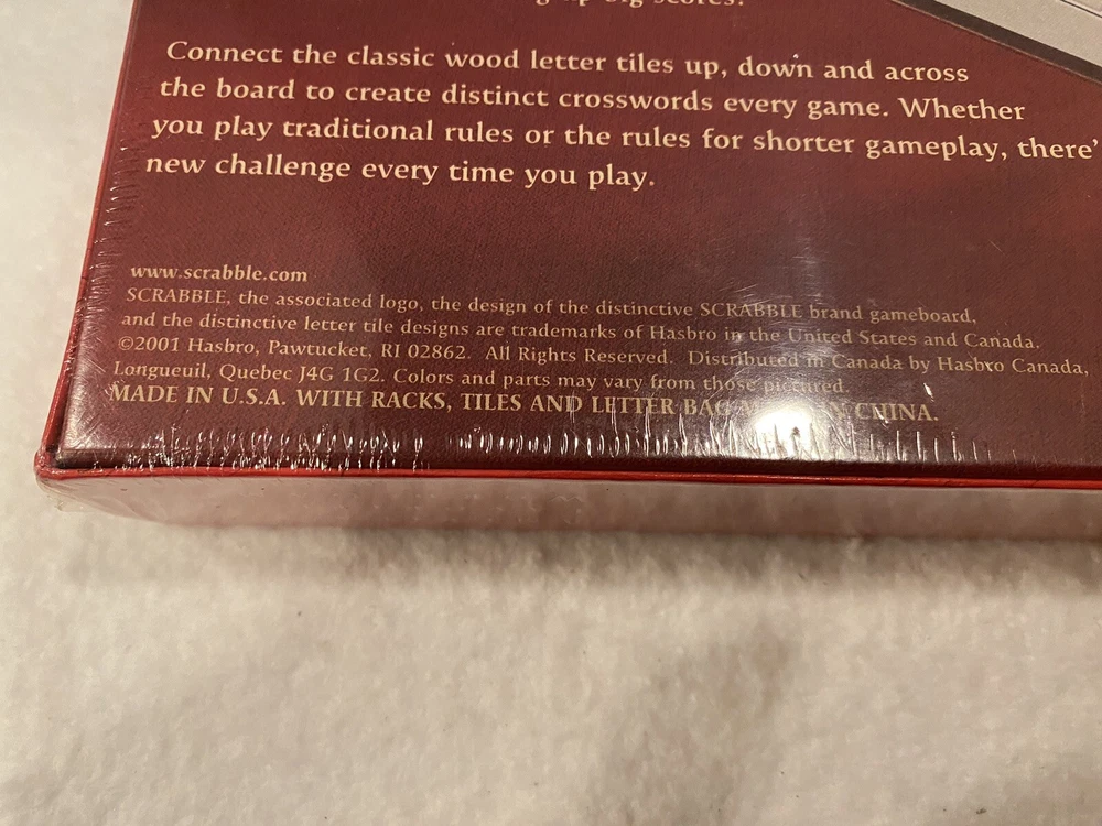 Game Title:Scrabblegtin13:032244040245Year:2001Min. Number of Players:2 playersCharacter Family:ScrabbleTheme:LettersUPC:032244040245Recommended Age Range:8 To AdultType:Game BoardAge Level:8-11 Years, 17 Years & UpBrand:Parker BrothersGame Type:Board Game