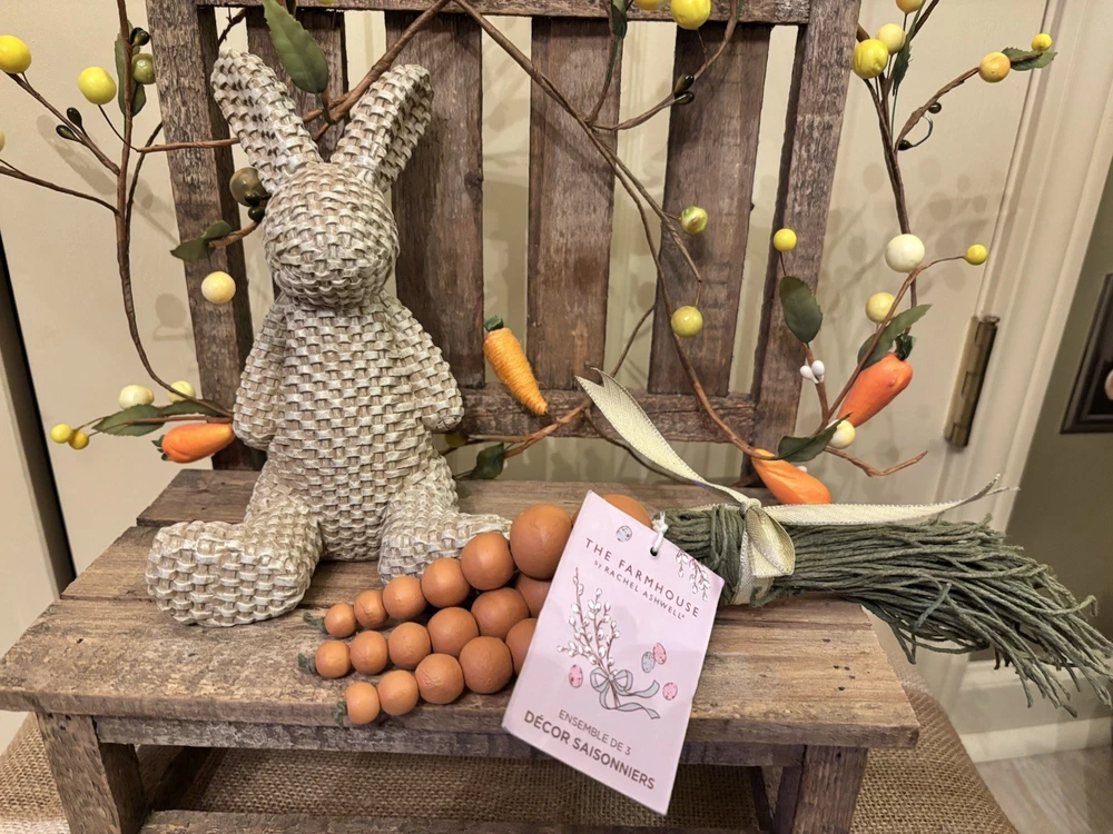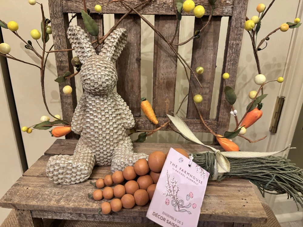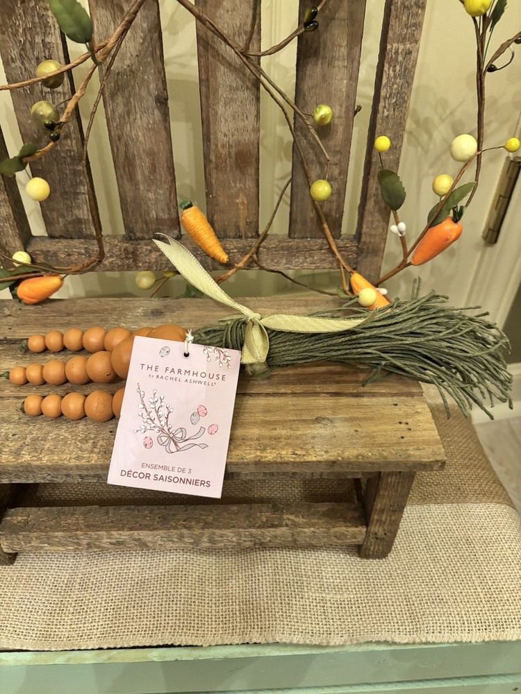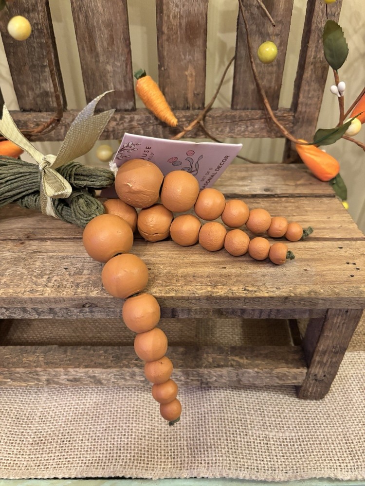 Home🐰New Farmhouse Wooden Beaded Carrot Set w/Woven Bunny Figure