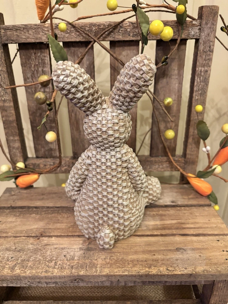 Brand new Farmhouse style wooden carrots and rattin style bunny figure Free Shipping