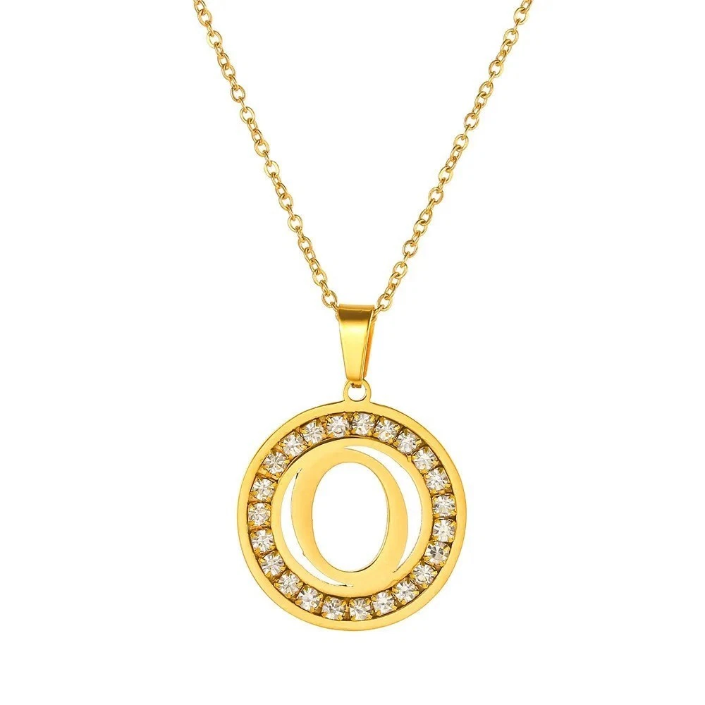 Fashion Gold Square Initial Letter Pendant Necklace, Bling Rhinestone Charm Gift
