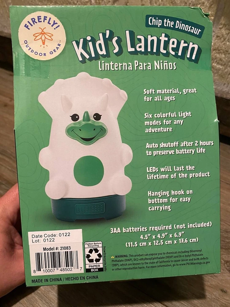 Country/Region of Manufacture:ChinaOperating Range:Does not sayVoltage:Does not sayModel:21083Item Height:4.5" x 4.9" x 6.9"Item Width:4.5" x 4.9" x 6.9"gtin13:810007485027Cord Type:CordlessType:LanternCustom Bundle:NoBrand:FireflyPower Source:3 AA Batteries (not included)Battery Included:NoColor:White and GreenLighting Technology:Multi-colored LEDsNumber of Batteries:3Battery Technology:AAItem Length:4.5" x 4.9" x 6.9"Material:PlasticItem Weight:Approx 9 ozMPN:Does not applyUPC:810007485027