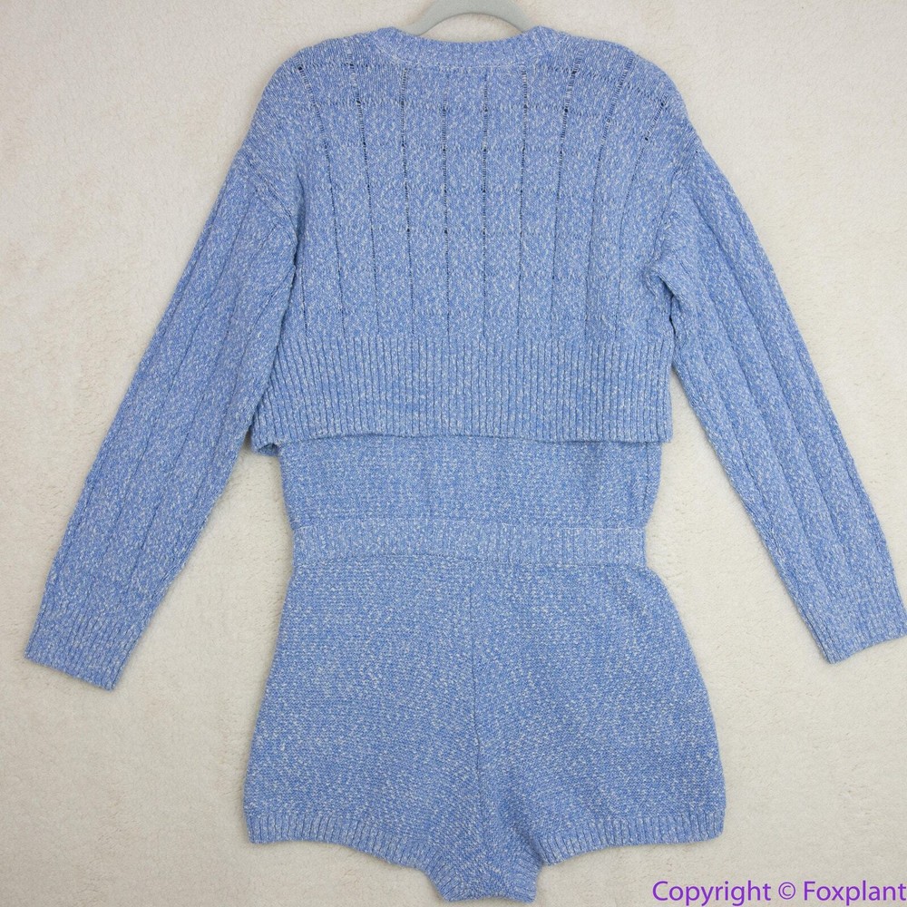 NEW Free People Beach Declan Knit Sweater Lounge Comfort Romper & Cardigan Set, size M New without tags. 100% cotton So cozy and essential, this sweet sweater set from our FP Beach collection features a knit romper and coordinating cardigan for the perfect throw-on-and-go look. Romper: Scoop neckline Smocked waistband Side pockets Relaxed, pull-on design Cardigan: Cropped silhouette Ribbed design Dropped shoulders Color: blue Measurements shown in photos are approximate and provided as a courtesy, not a guarantee of fit. Excellent condition. No noticeable flaws or stains or damages. Smoke free, pet free home. Actual colors may vary due to differences in lightings and computer monitors.
