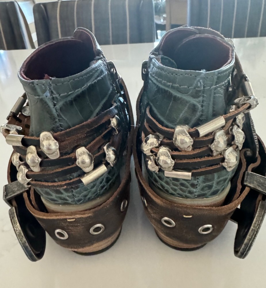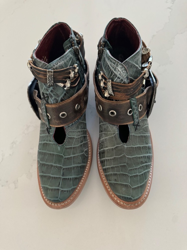New Freebird Saloon Teal Leather Croc Buckle Western Boots Women's US Size 7