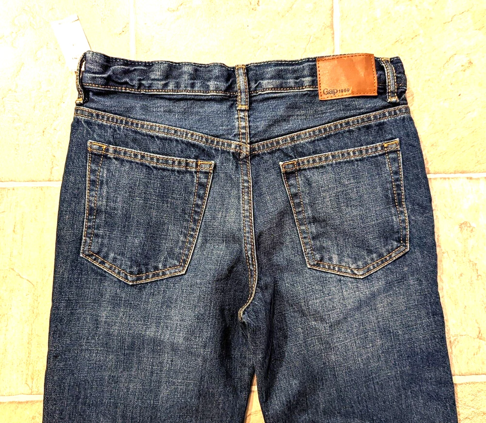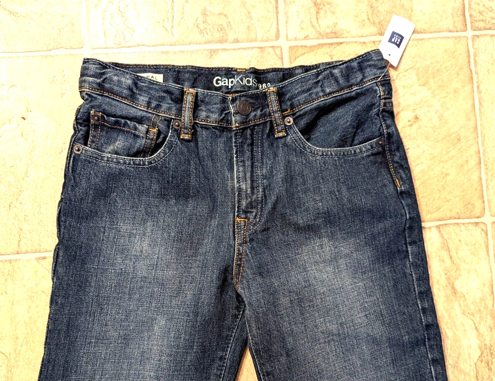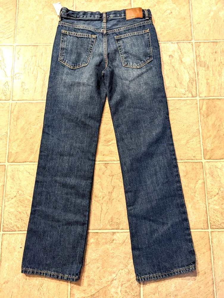 size 14 regular, zipper fly, no stretchy, pockets, adjustable waist Length down the side of leg: 37" Width around bottom of leg: 14" Rise: 9"