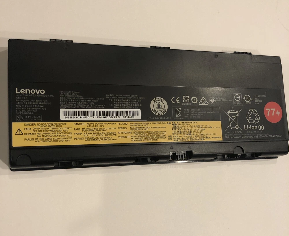 Upgrade the power source of your Lenovo Thinkpad P50, P51, or P52 with this genuine 90Wh 77+ 00NY492 SB10H45077 battery. With a voltage of 11.4V and 9 battery cells, this Li-Ion battery can keep your device running for hours. Its sleek black design perfectly complements the style of your laptop. This laptop battery is compatible with the Lenovo ThinkPad product line and has a battery capacity of 90Wh/7900mAh. It is designed to provide reliable and long-lasting power to your device. Bid goodbye to worrying about running out of juice and hello to uninterrupted usage with this genuine Lenovo battery. Original Lenovo Batteries for P50, P51, P52 Thinkpads Batteries Sold As Is.