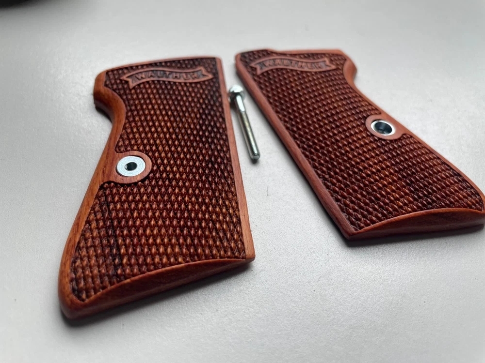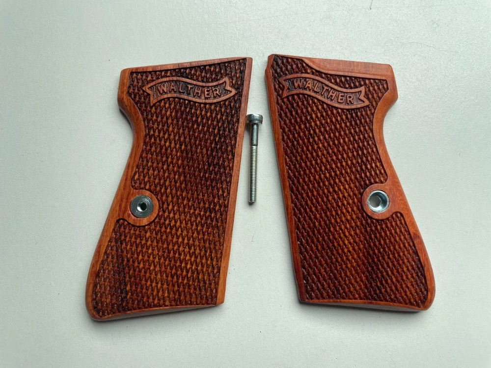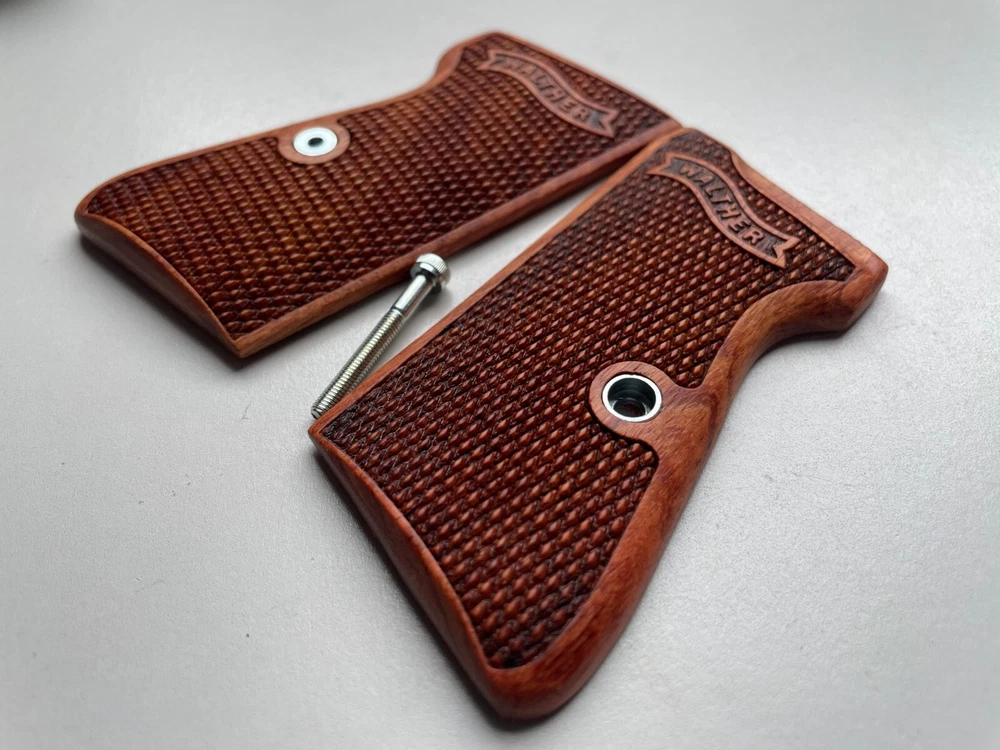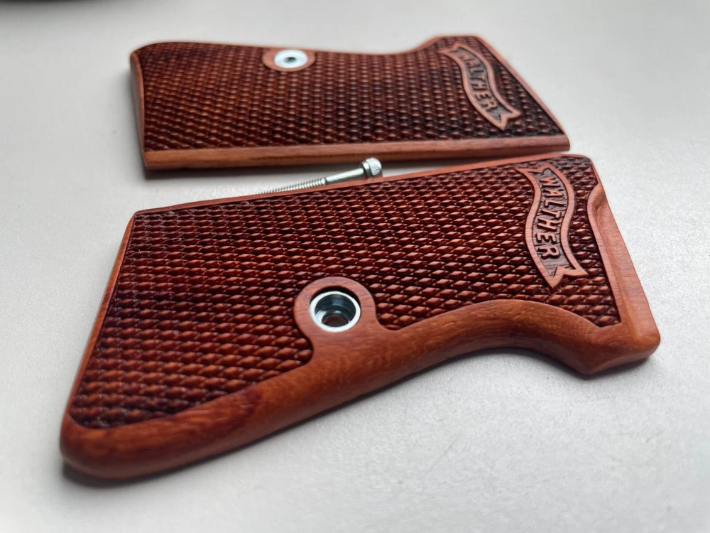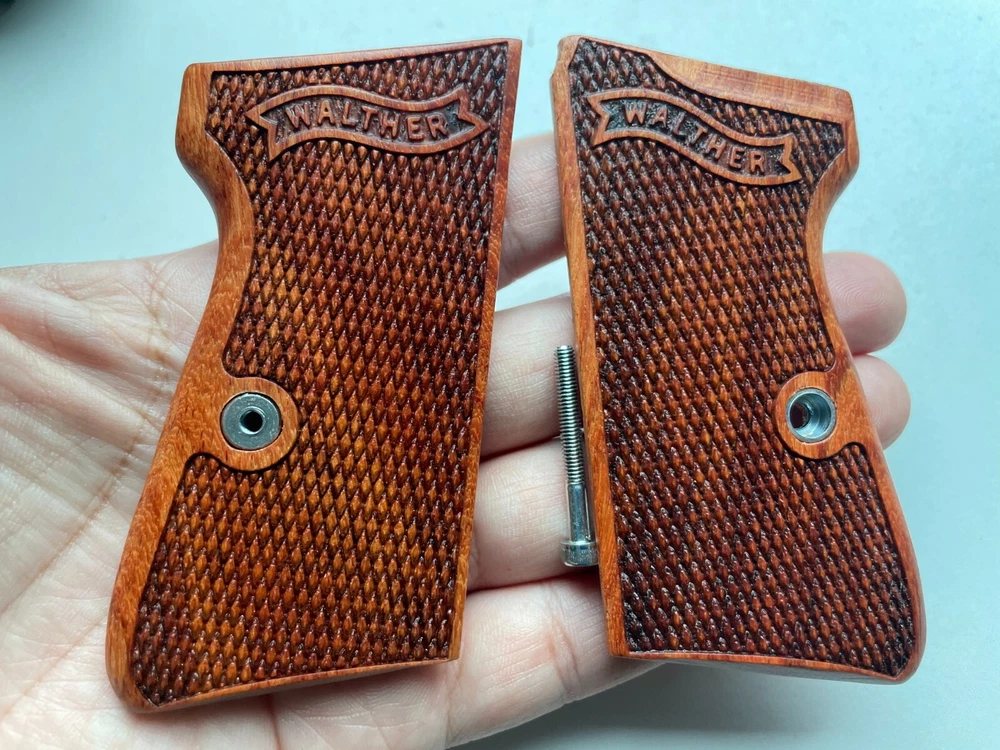 NEW GRIPS FOR WALTHER PP, PPK/S INTERARM .32/.380 ACP , 22LR CHECKERED HARDWOOD , THAI HANDMADE For Interarm & S&W manufactured ONLY Not fit Arkansas PPK/S takes the difference grips for the PPK Please note: This set is not fit for PPK (because PPK is Closed back strap we can't made them) Description Please Note; Do not buy If you not understand in variation of wood color from one piece to the next or handmade job Condition: new Material: praduak wood Quantity: 1 Set = Right and Left side of grips and screw Import duties, taxes, and charges are not included in the item price or shipping cost. These charges are the buyer's responsibility. Please check with your country's customs office to determine what these additional costs will be prior to bidding or buying. Shipping Handling WORLDWIDE. The package will be shipped directly from Thailand , and it will take about 7-15 business days . Please note: Import duties, taxes, and charges are not included in the item price or shipping cost. These charges are the buyer's responsibility. Please check with your country's customs office to determine what these additional costs will be prior to bidding or buying. 100% Satisfaction Guarantee : If you are not satisfied with the product you purchased for any reason, please contact us for a return instruction within 30 days for a refund. Shipping Handling costs are not refundable. Return shipping cost will be paid by buyer.