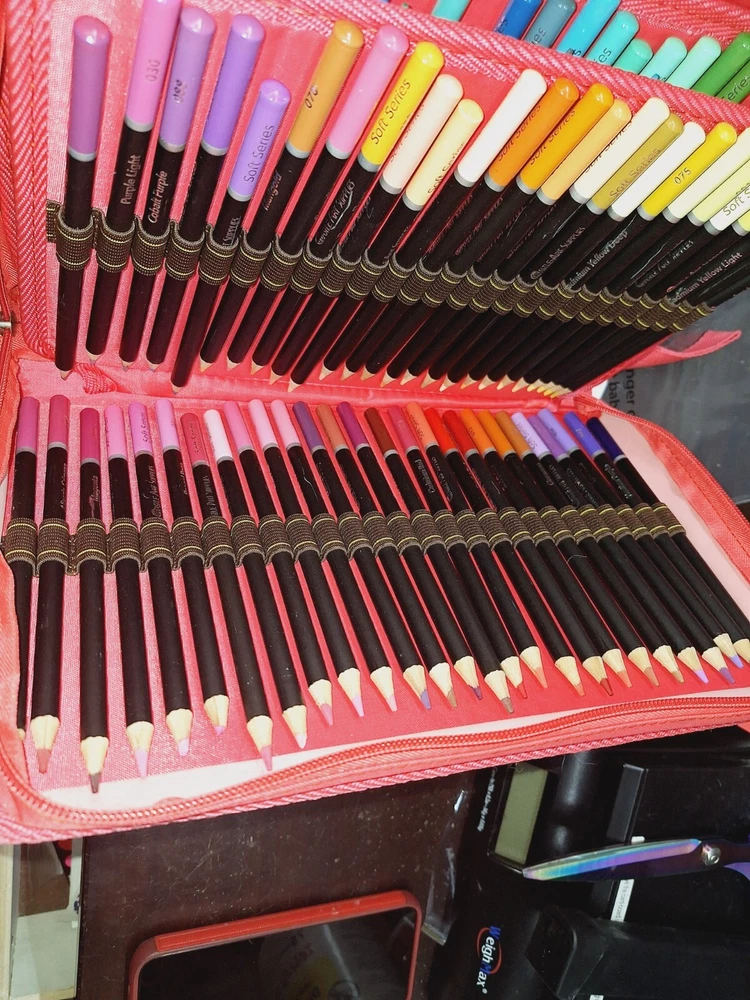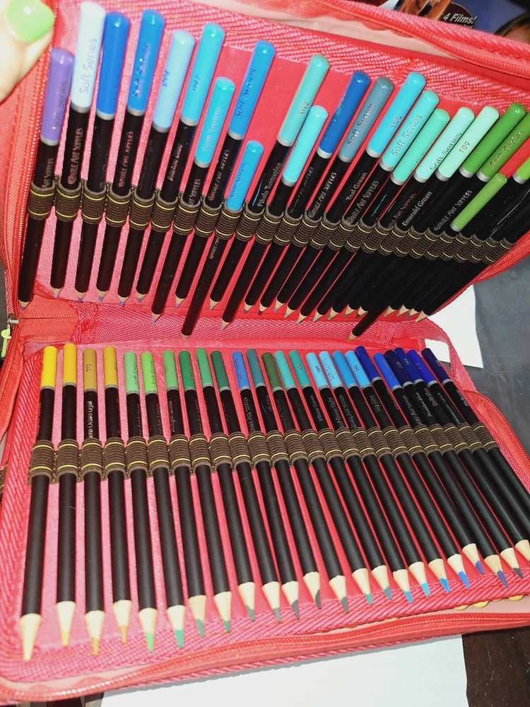 As shown, Hot Pink zipper Art Binder with the HIGH End Colored Pencils Inside WE HAVE SOOOOOOOOO MUCH MORE,PLEASE LOOK ----->NO Returns / Please! ASK ??? Before Purchase!!!<----- ALL items described to the best of our ability WE DO NOT ACCEPT RETURNS BASED ON HOW THE ITEM LOOKED, FIT OR FELT ON YOU We are a Second hand shop. Most items are Used, We will post MANY photos, measurements & Flaws. Check out ALL our Listings - We have SO Much More Remember, colors may vary from monitor, cell phone to actual item Have Questions? Just ASK!