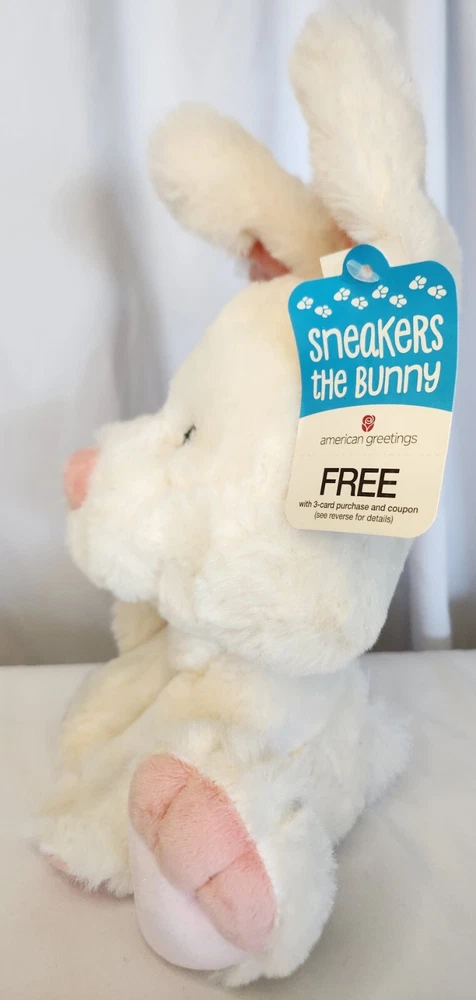 New Hallmark Sneakers 11” Plush Bunny White/Pink.