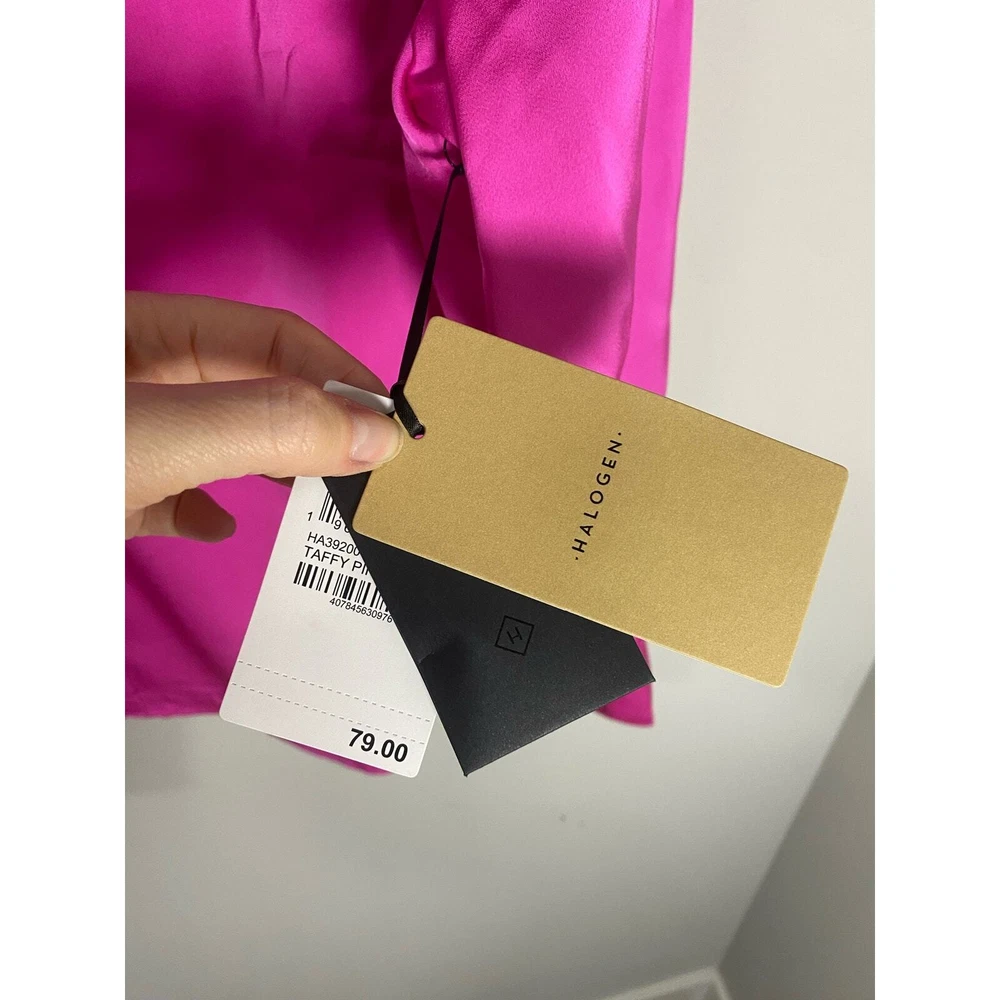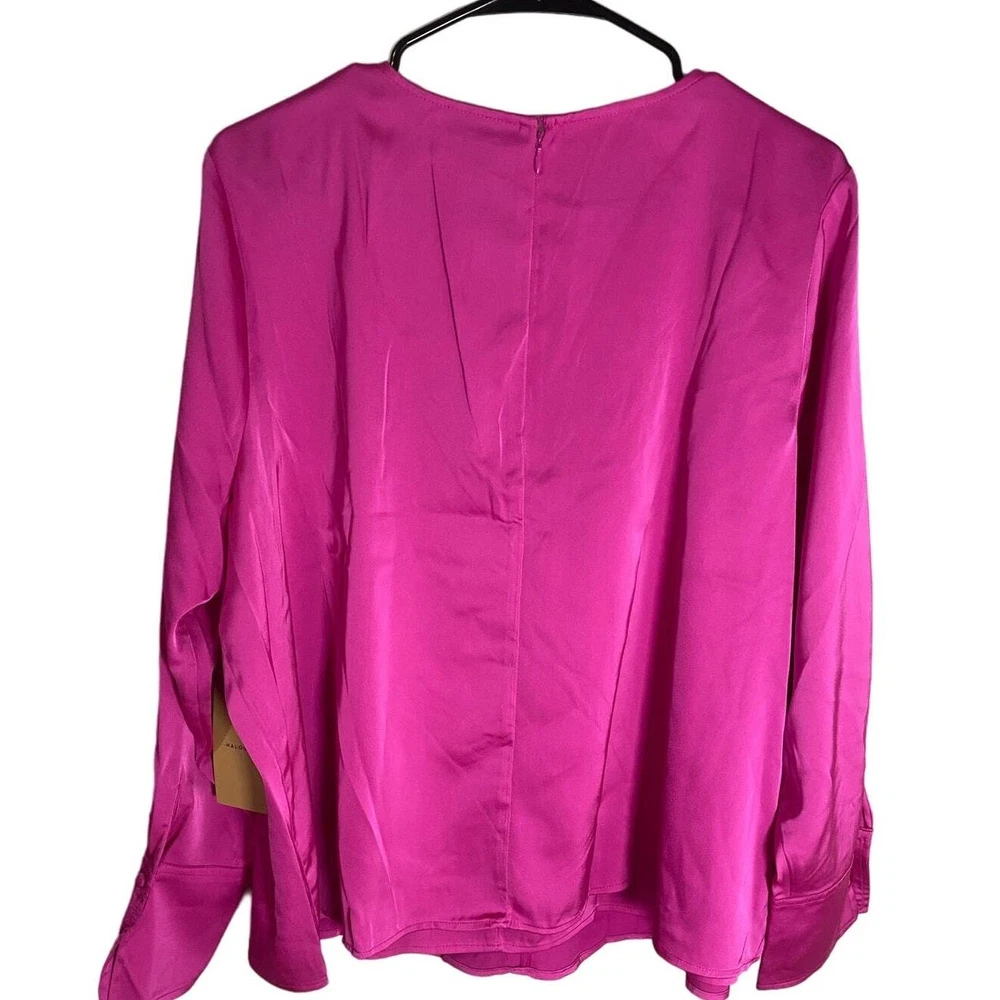 New Halogen Long Sleeve Crossover Satin Blouse - Taffy Pink Size 1X