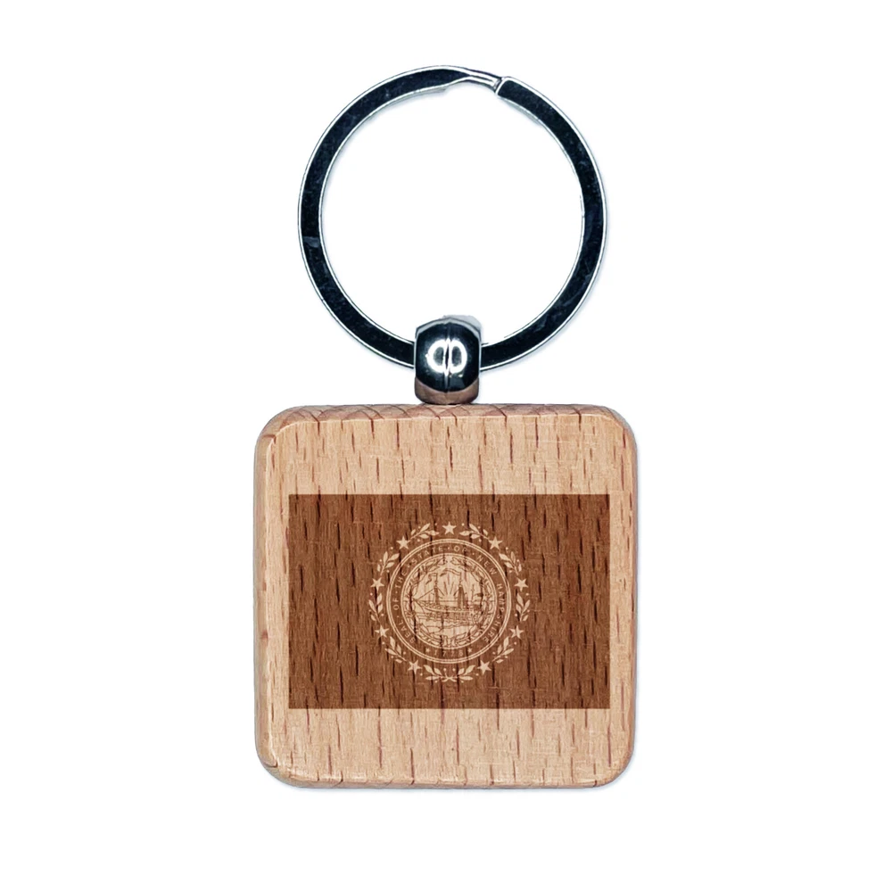 New Hampshire State Flag Engraved Wood Square Keychain Tag Charm