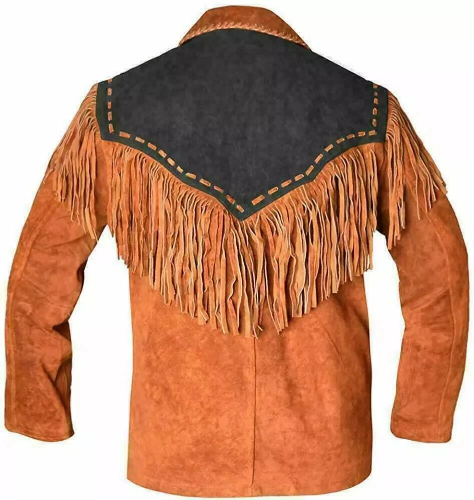 Men's Western Cow Boy Suede Leather Jacket With Fringes Stylish Cowboy Look! Step into timeless style with this vintage-inspired Western Fringe Suede Leather Jacket. Handcrafted from genuine suede leather, this jacket features intricate beaded designs on the shoulders and chest, adding a touch of craftsmanship and authenticity. The striking fringe details along the front, back, and sleeves make it a standout piece, perfect for those who appreciate classic Western wear. Features: Material : 100% Genuine Suede Leather Design : Intricate beaded design on shoulders and chest Details : Accented with studded details for a bold, edgy look Colors Available : Choose from a variety of colors Fit : Comfortable fit with easy movement Closure : Front button closure with stylish conchos Versatile : Perfect for casual wear, concerts, festivals, and more Why Choose this Suit? We are committed to providing high-quality, unique fashion pieces that cater to those who dare to be different. Shop with us for a seamless experience and express your true self with our alternative apparel collection. Sizing Guide: Available in various sizes. Please refer to the size chart in the images for accurate measurements and choose the size that best fits you. Select the exact size before placing the order Guessing Your Size : Always take the latest and actual measurement instead of estimating. Not Taking Measurements Seriously : Incorrect sizing can result in costly exchanges. Customization: We have variety of sizes and colors. You can contact us directly for your desired Size and Color. Order Detail: 1 pc Jacket Additional Information: ü Examination: All products are carefully examined before dispatch to ensure quality. ü Return Policy: If you need to return the goods for any reason, please contact us within 30 days from the date of the order. Items must be in re-sellable condition for exchanges. All shipping costs for both returned and exchanged items will be the responsibility of the buyer. Customer Satisfaction Guaranteed We are committed to providing our customers with the highest quality products and excellent service. If you have any questions or need assistance, please do not hesitate to contact us. Your satisfaction is our priority. If any product falls below your satisfaction level, please contact us before returning the item or leaving negative feedback. We want you to be happy with your purchase and we will help you out.