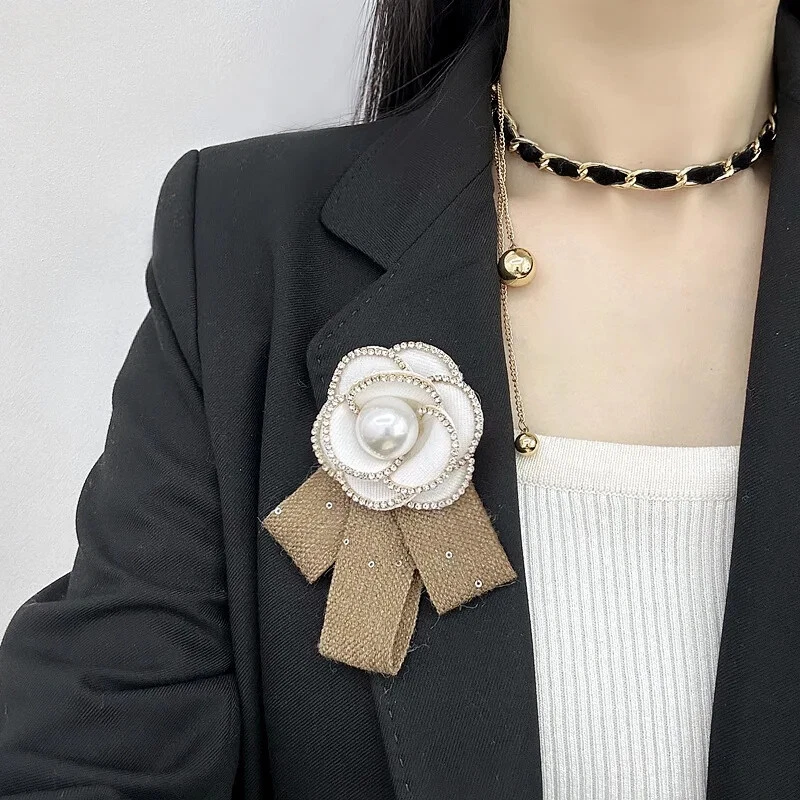 New High-end French Retro Camellia Brooch Elegant Bow Corsage Celebrity Pins