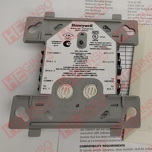 The product is a Honeywell TC810R1024 Addressable Relay Module for fire alarms. It is designed for industrial automation and motion control systems, specifically for use with PLC processors. This module is compatible with the Automate controller platform and has a California Prop 65 warning attached. Made in China, it offers fast shipping for quick installation and operation in various industrial settings. Honeywell is a trusted brand known for quality and reliability in the field of industrial automation and motion controls.