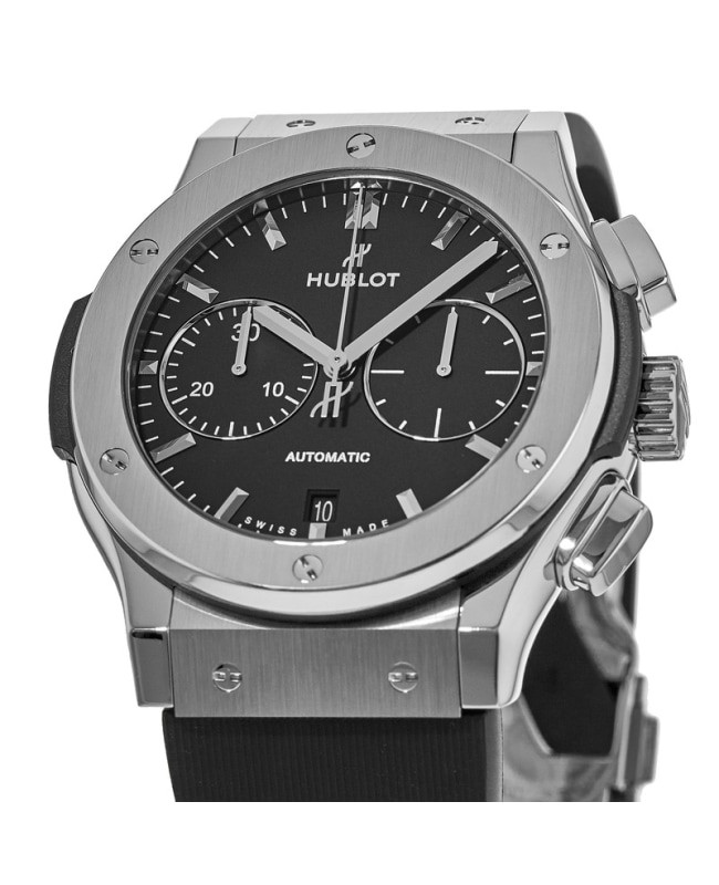 Hublot Classic Fusion Chronograph 45mm Black Dial Titanium Case Rubber Strap Men's 521.NX.1171.RX 100% Brand New & Authentic Product Shipped Within 3 Days Top Seller Reviews speak for themselves Click to view Shop risk free with WatchMaxx Money Back Guarantee 2 Year Warranty Usually ships within 3 business days of receiving payment. We accept PayPal. For other payment options please contact us. Details Warranty Return Policy Shipping & Tax About Us Questions? Product Details Case Case Material Titanium Case Description Polished Titanium case with brushed finished top & bottom center links between the lugs on Case Finish Polished Case Diameter 45.00mm Case Back Transparent Bezel Fixed Crystal Scratch Resistant Sapphire Crown Polished titanium crown with the Hublot logo Dial Dial Color Black Dial Description Brushed Silver tone hands and index hour markers with 2 sub-dials on a flat black Dial Markers Stick Hand Color Silver Sub-Dials Small Seconds and 30 Minute Calendar Date at 6 o'clock Functions Date, Power Reserve, Hour, Minute, Second and Chronograph Movement Movement Type Automatic Self Winding Engine Hublot Calibre HUB1143 Power Reserve Approx. 42 Hours Additional Information Water Resistant 50 Meters - 165 Feet Warranty 2 Year WatchMaxx Warranty Band Band Material Rubber Band Color Black Band Type Strap Clasp Type Deployment with Push Button Additional Info Also known as 521NX1171RX, 521nx1171rx, 521.nx.1171.rx Immerse yourself in the world of extraordinary elegance and sophisticated style with the Brand New Authentic Hublot Classic Fusion Chronograph 45mm Men's Watch. A true embodiment of Hublot's innovative design and unmatched craftsmanship, this Hublot watch is more than a timepiece – it's a statement. The centerpiece of this exquisite wristwatch is a robust, polished Titanium case. Paired perfectly with a dynamic black rubber strap, the watch offers a seamless blend of sporty aesthetics and luxurious refinement. Upon viewing, your eyes are immediately drawn to the flat black dial, a canvas for the brushed silver-tone hands and index hour markers. This striking combination provides a contrast that is both visually stunning and remarkably easy to read. Two practical sub-dials provide additional functionality and give the dial a harmonious balance. Each powered by the precision of the Hublot Calibre HUB1143 engine, these dials display small seconds and 30-minute intervals, perfect for those who appreciate detailed timekeeping. This superior movement also offers a power reserve of an impressive 42 hours, ensuring reliable timekeeping even when left unworn for an extended period. The watch's durability is unrivaled, thanks to its scratch-resistant sapphire crystal. Even the most rigorous daily wear won't impact the watch's clarity or hinder your ability to appreciate the dial. Furthermore, the transparent case back provides a glimpse into the heart of the watch's mechanics, a rare treat for true watch enthusiasts. With a water resistance of up to 165ft, or 50 meters, this watch is as practical as it is luxurious. It stands up to the demands of daily life, even in wet conditions. Whether you're attending a business meeting, traveling the world, or simply enjoying a weekend getaway, the Hublot Classic Fusion Chronograph is the companion you want on your wrist. Warranty The length of the warranty period for all items are specified in the item details, and are guaranteed from the date of purchase. Warranty covers only defects in manufacturing or materials, movement, and battery replacement. Warranty excludes scratches or changes to the finish, damage to the glass, crystal, crown, stem, case, strap, or bracelet. Damage caused by excessive wear-and-tear and/or physical abuse, or resulting from wear under conditions exceeding the manufacturer's water resistance limitations is excluded from the warranty. WatchMaxx will repair the product, including the cost of all parts and labor during the warranty period. WatchMaxx will return the repaired or replacement item at no charge to the customer. Warranty return parcels must be clearly labeled with a return authorization number obtained by contacting WatchMaxx customer service. Parcels without a clearly visible valid return authorization number will be refused. Goods must be returned via a traceable carrier, such as FedEx, United Parcel Service (UPS) or the United States Postal Service (USPS), with insurance and delivery prepaid by the purchaser. Parcels shipped collect will be refused. The customer is liable for loss or damage in transit. WatchMaxx disclaims any liability for consequential or incidental damages for breach of written or implied warranty of this item, including merchantability or fitness for a particular purpose. This warranty gives you specific legal rights and you may have other rights that vary from state to state. Some states do not allow the exclusion or limitation of incidental or consequential damages, so the above limitation may not apply to you. Return Policy After receiving the item, contact seller within: 30 days. Refund will be given as: Money back. Return shipping: Seller pays return shipping. All items purchased from WatchMaxx may be returned with the following conditions, except those marked as "Final Sale": Merchandise must be returned within 30 days of receipt, in original, unused condition with all original tape, plastic protectors, and stickers intact and having never been removed. All returned items, whether for refund, repair or exchange, must be clearly labeled with a return authorization number obtained by contacting WatchMaxx customer service via email to WatchMaxx. Parcels without a clearly visible valid return authorization number will be refused. Goods must be returned via a traceable carrier, such as FedEx, United Parcel Service (UPS) or the United States Postal Service (USPS), with insurance and delivery to WatchMaxx prepaid by the purchaser. Parcels shipped collect will be refused. The customer is 