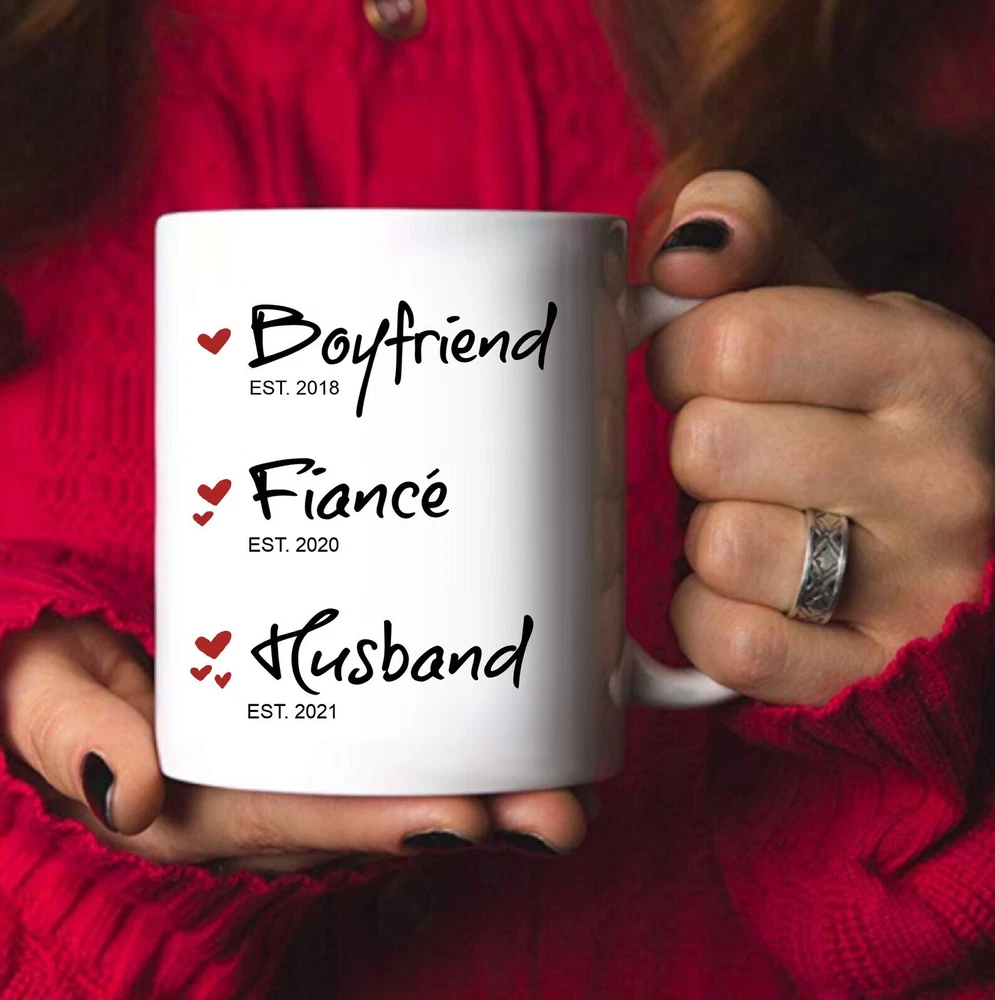 New Husband Gift Husband Mug Boyfreind To Fiance To Husband Personalized Gift Product Details.. This high quality 11oz. ceramic white mug has a premium hard coat that provides crisp and vibrant color reproduction sure to last for years. Perfect for all hot & cold beverages. The highest quality printing possible is used. It will never fade no matter how many times you wash it. Material: 100% Ceramic. Print both sides. Dishwasher and Microwave Safe. High Gloss + Premium White Finish. Printed in the U.S.A. Personalized & Custom. We support personalized and custom mug to add custom, when placing an order, you can add notes to the "order note" in shipping address section. Also you can contact us directly via message. Shipping Info. Ready to ship in 1 to 2 business days, All products are made-to-order and proudly printed in the United States. Shipped by USPS and DHL, You will receive your order in 5-7 days. Replace & Refund. All products are defective during shipping broken, chipped will be replaced free of charge. You are not satisfied with the product, we will refund 100% money to you. If any other issues arise, please do not hesitate to message, we would be more than happy to assist you.