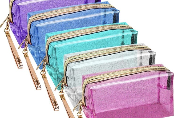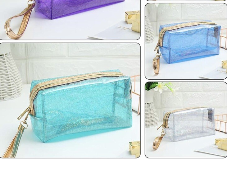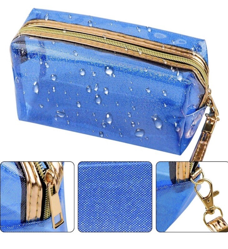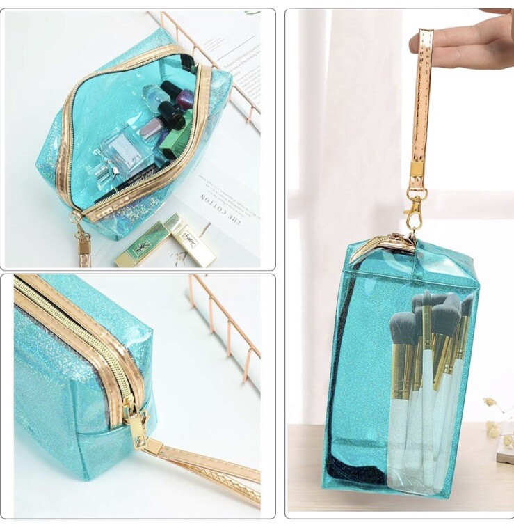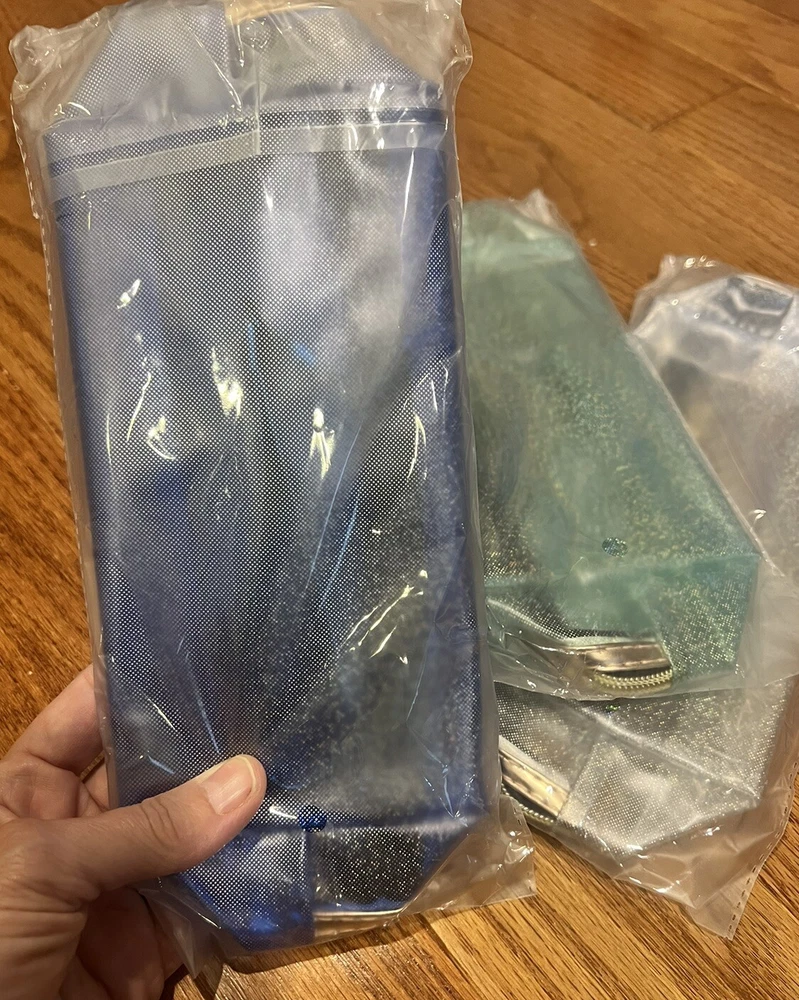 New In Package Set Of 3 Waterproof Cosmetic Wristlet Bags Translucent Metallic