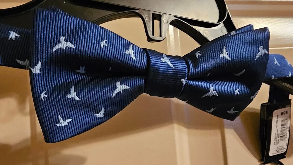 New J. Ferrar Pre-tied Adjustable Navy Blue Bow Tie, Super Cute Dove? Design, (Retails for $30) ***Check out my other listings for different ties that I have posted*** ***DISCLAIMER: *PLEASE VIEW ALL PHOTOS & READ FULL DESCRIPTION *I inspect each item myself & try to list any & all defects that I see. *All measurements are approximate. *True color may vary from screen to screen & light to light. *Please feel free to ask any questions before bidding. *Items come from a Smoke-Free home. *Shipping available within the Continental United States. ***Possible discounted shipping available if multiple items are purchased within a reasonable time of each other*** *If you are not satisfied with any aspect of your purchase, Please contact me before leaving negative or neutral feedback. I want you to be happy with your purchase!! *THANKS FOR LOOKING!