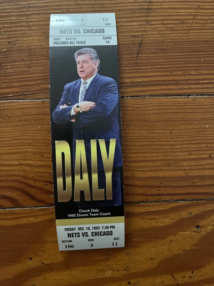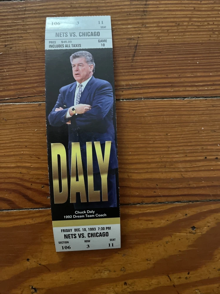 This ticket stub from 1993 is a must-have for any fan of vintage basketball memorabilia. It features a matchup between the New Jersey Nets and the Chicago Bulls, two iconic teams from the era. The ticket is in excellent condition and is an original piece from the United States. The ticket is a great addition to any sports collection and is a perfect way to remember the game. It is a rare find and is sure to impress any basketball fan. Add it to your collection today!