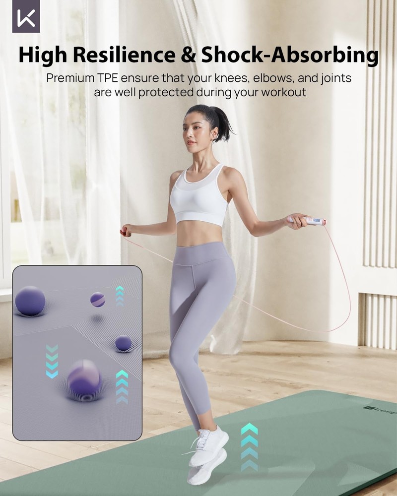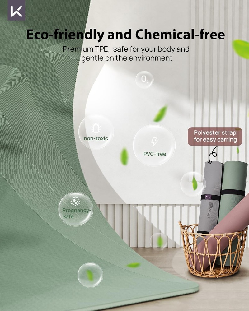 Wider, Thicker, and Ready for Anything -- Upgrade your yoga practice with our 32-inch Extra Wide Yoga Mat, designed to provide you with ample space for every pose. With its 0.28-inch (7mm) thick padding, this mat offers superior cushioning, ensuring that your knees, elbows, and joints are well protected during your workout Double-Sided Non-Slip -- Our fitness mat features a fingerprint-like anti-slip texture on the top layer, offering precise grip and control during every pose. The bottom layer features a comprehensive anti-slip pattern, ensuring no corner is left unsecured, giving you a solid, unwavering foundation.Whether you're practicing on a dry or wet surface, you can focus on your workout with complete peace of mind Planet-friendly Comfort for Body and Mind -- Crafted from premium TPE, making it both eco-friendly and chemical-free. This yoga mat is free from plasticizers and formamide, ensuring it's safe for your body and gentle on the environment. Not only offers superior cushioning and grip but also ensures durability and long-lasting performance Lightweight & Easy to Carry -- The exercise mats for home workout is ONLY WEIGHT 2.86 Pounds, also together with a high-quality free adjustable polyester strap. It's convenient and comfortable for transport, to gym, yoga class or anywhere outside. Also a wonderful gift idea for anyone who loves stretching, pilates, fitness or workouts at home! Care Instructions -- Before first use, allow the yoga mat to air out to dissipate any odor that may have developed from being stored in the packaging. As for cleaning, spot clean with a cloth dampened in cold water or rinse with clean water then lay flat to dry. Avoid soaking the mat for extended periods or exposing it to direct sunlight for long durations