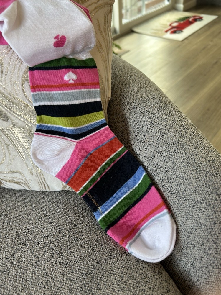 New! Kate Spade New York Womens Shortie Crew Socks, Blue Pink KSNY Spring πŸŒΊπŸ’š