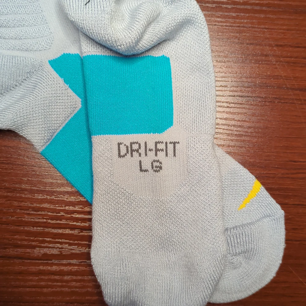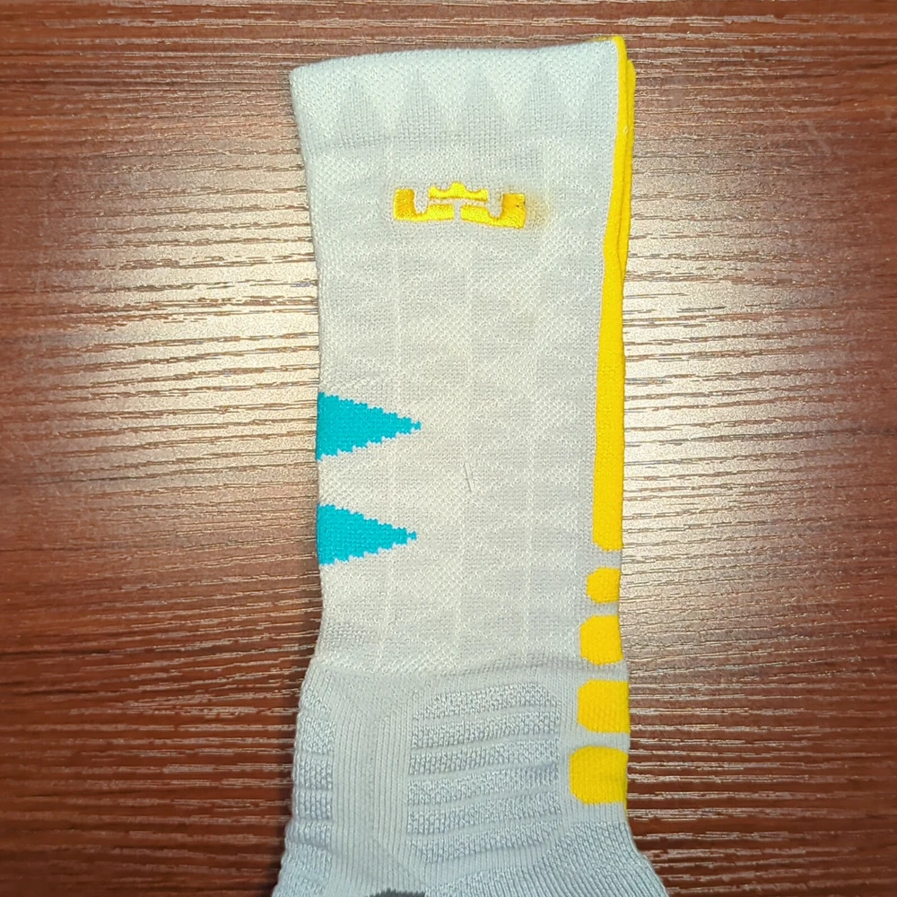 LeBron Nike Hyper Elite Socks Gray/Blue/Yellow Size Large Brand new without tags 100% Authentic Fast Shipping: Ships in 1-2 business days from Illinois Many colors available, check out my page to see them all Message me with any questions The Nike Elite Basketball Crew Socks feature Dri-Fit fabric that keeps your feet cool and comfortable. It’s made for durability and offers a supportive and snug fit. The Nike Elite Basketball Crew Sock is a must own for any basketball player. Perfect for basketball, volleyball, and other sports Pair different colorways with your Kobe's, Lebron's, KD's and more. Performance basketball crew socks deliver superior fit and comfort. Strategically placed cushioning absorbs impact Dri-Fit technology helps keep feet feeling dry and comfortable. Left/right anatomical design for targeted comfort. Ventilation zones promote breath-ability to keep you cool 63% polyester, 18% nylon, 16% cotton, 3% spandex Size Guide Small: Youth 4-6 Medium: Men's 6-8 Large: Men's 8-12 Extra Large: Men's 12-15