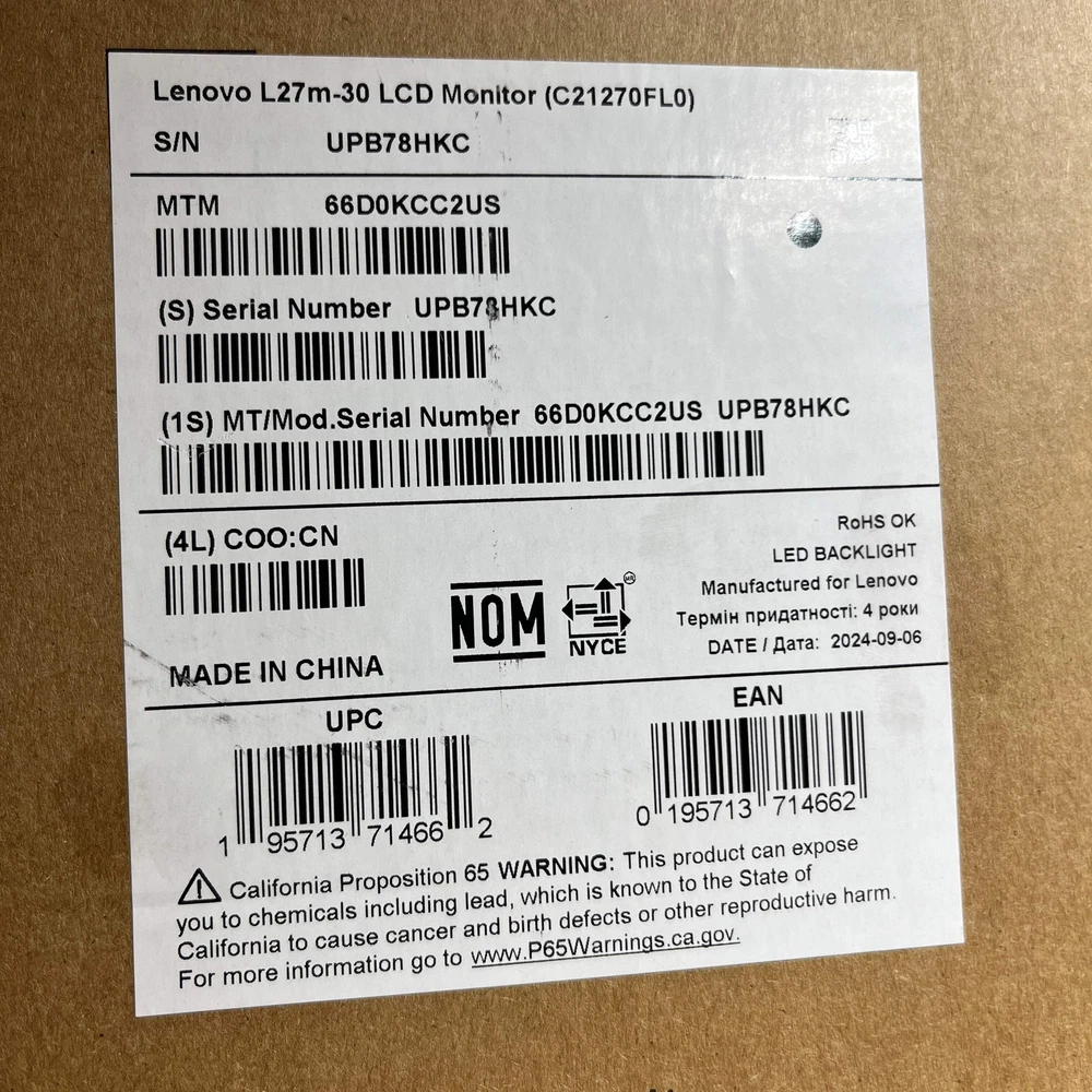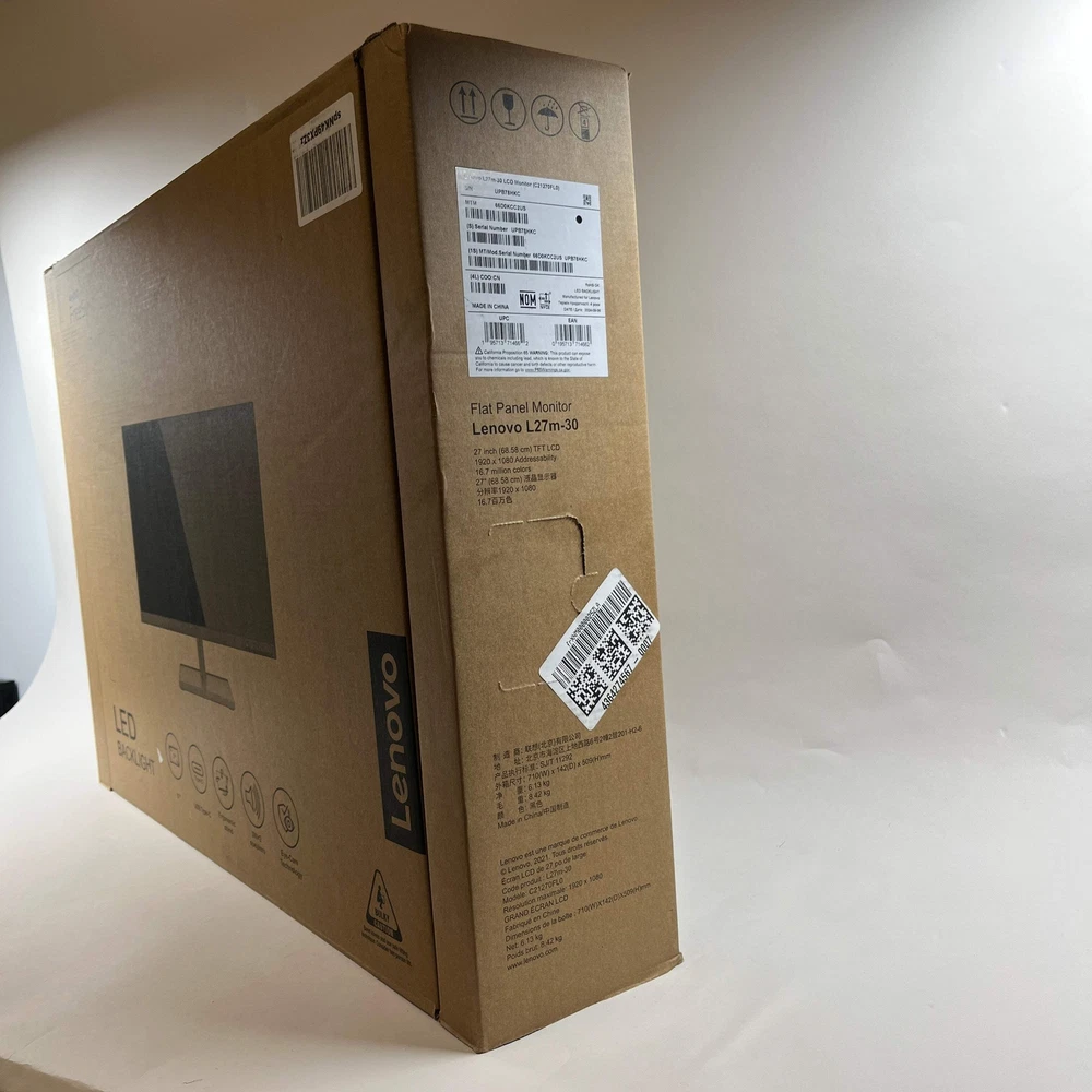 New Lenovo 27" C21270FLO TFT LCD Flat 75Hz Flat Panel Monitor New Lenovo 27" C21270FLO TFT LCD Flat 75Hz Flat Panel Monitor Items included in this sale: New Lenovo 27" C21270FLO TFT LCD Flat 75Hz Flat Panel Monitor DisplayPort Cable Original Box *All originally boxed contents are included. Specifications: Collection Monitor Brand Lenovo Screen Size 27" MPN C21270FLO Condition New Display Type TFT LCD Resolution 1920 x 1080 Refresh Rate 75Hz Panel Type Flat Type Flat Panel Monitor Response Time 4ms Manufacture Year 2021 Manufacture Warranty Yes 12/2025 UPC 195713714662 Serial# UPB78HKC, UPB78HK5 Connections Display Port (1.4) HDMI At the time of this posting we have 2 available. This listing is for one of them. You will receive one in similar condition to the one in the photos with one of the serial numbers listed above. Cosmetic condition: This device is brand new and sealed in the manufacturer's original packaging. Functionality condition: This device is brand new and sealed in its manufacturer's original packaging. It should work according to the manufacturer's specifications. New Lenovo 27" C21270FLO TFT LCD Flat 75Hz Flat Panel Monitor New Lenovo 27" C21270FLO TFT LCD Flat 75Hz Flat Panel Monitor Items included in this sale: New Lenovo 27" C21270FLO TFT LCD Flat 75Hz Flat Panel Monitor DisplayPort Cable Original Box *All originally boxed contents are included. Specifications: Collection Monitor Brand Lenovo Screen Size 27" MPN C21270FLO Condition New Display Type TFT LCD Resolution 1920 x 1080 Refresh Rate 75Hz Panel Type Flat Type Flat Panel Monitor Response Time 4ms Manufacture Year 2021 Manufacture Warranty Yes 12/2025 UPC 195713714662 Serial# UPB78HKC, UPB78HK5 Connections Display Port (1.4) HDMI At the time of this posting we have 2 available. This listing is for one of them. You will receive one in similar condition to the one in the photos with one of the serial numbers listed above. Cosmetic condition: This device is brand new and sealed in the manufacturer's original packaging. Functionality condition: This device is brand new and sealed in its manufacturer's original packaging. It should work according to the manufacturer's specifications. × × × × × × × × × Buy now and save! Shipping info Click the Shipping & Payments tab above the listing description for more info FREE Shipping Click the Shipping & Payments tab above the listing description for more info! Additional delivery notes PICK UP OPTION Sorry, our items are NOT available for pick-up. PAYMENT Immediate payment is required upon selecting "Buy It Now" or upon checking out through the cart. We accept payment via U.S. PayPal accounts and all Major Credit Cards, Debit Cards & Google Pay. We are legally required to collect sales tax in those states and localities where we maintain a physical presence (nexus). The applicable amount of sales tax charged to an order will be calculated based on the shipment destination's state and local sales tax laws. Thank you for shopping with us on eBay! Additional Information No additional information at this time Ask seller a question You might also like New Parker Compax3S Intelligent Servo Drive S025V2F12I20T11M00 New Debra professional wireless Microphone AU400 New Brother INKvestment Tank C30333PKS Yellow, Cyan and Magenta Ink Cartridge EX Broken Vivitar VES529 16.0MP Digital Camera Contact To contact our Customer Service Team, simply click the button here and our Customer Service team will be happy to assist. Ask seller a question © PayMore Shopton Shipping & Payments Shipping is FREE for this item Payment Accepted Payment Methods Immediate payment is required upon selecting "Buy It Now" or upon checking out through the cart. We accept payment via U.S. PayPal accounts and all Major Credit Cards, Debit Cards & Google Pay. We are legally required to collect sales tax in those states and localities where we maintain a physical presence (nexus). The applicable amount of sales tax charged to an order will be calculated based on the shipment destination's state and local sales tax laws. Thank you for shopping with us on eBay! Returns Returns are accepted Items must be returned within 30 days of the auction ending Seller will pay for return shipping. eBay integration by