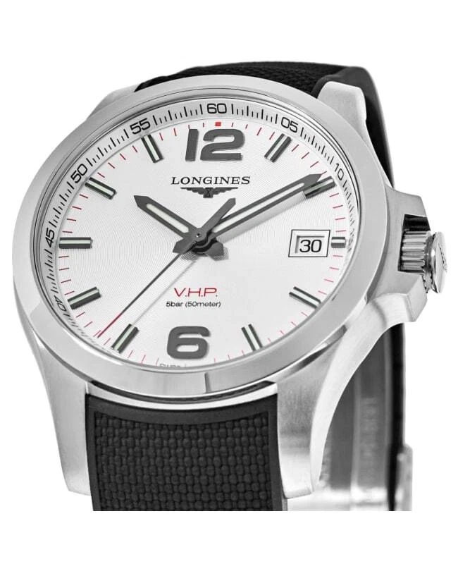Longines Conquest V.H.P. Silver Dial Black Rubber Strap Men's Watch L3.726.4.76.9 100% Brand New & Authentic Product Shipped Within 1 Day Top Seller Reviews speak for themselves Click to view Shop risk free with WatchMaxx Money Back Guarantee 2 Year Warranty Usually ships within 1 business day of receiving payment. We accept PayPal. For other payment options please contact us. Details Warranty Return Policy Shipping & Tax About Us Questions? Product Details Case Case Material Stainless Steel Case Description Brushed and Polished Stainless Steel Case Finish Brushed and Polished Case Shape Round Case Diameter 43mm Case Back Solid Bezel Smooth Crystal Scratch Resistant Sapphire Crown Push-Pull Dial Dial Color Silver Dial Description Luminous Grey Hands and Arabic Numeral/Stick Hour Markers with Minute Markers Around the Outer Rim, and the Date at 3 o'clock on a Silver Dial Dial Markers Stick Hand Color Grey Sub-Dials Date Calendar Date at 3 o'clock Functions Hour, Minute, Second, Date and Battery End Of Life Indicator Movement Movement Type Battery Operated Quartz Engine V.H.P. Very High Precision Movement Description Swiss Quartz Band Band Material Rubber Band Color Black Band Description Black Rubber Strap Band Type Strap Clasp Type Deployment with Push Button Clasp Description Brushed and Polished Stainless Steel Additional Information Water Resistant 50 Meters - 165 Feet Style Fashion Warranty 2 Year WatchMaxx Warranty Additional Info Also known as L37264769 Brand New 100% Authentic Longines Conquest V.H.P. Silver Dial Black Rubber Strap Men's Fashion Watch Model L3.726.4.76.9. Brushed and Polished Stainless Steel case with Black Rubber Strap . Brushed and Polished Stainless Steel Deployment with Push Button clasp. Smooth bezel. Dial description: Luminous Grey Hands and Arabic Numeral/Stick Hour Markers with Minute Markers Around the Outer Rim, and the Date at 3 o'clock on a Silver Dial. Swiss Quartz movement. Calendar: Date at 3 o'clock. Chronograph sub-dials display: Date. Powered by V.H.P. Very High Precision engine. Watch functions: Hour, Minute, Second, Date, Battery End Of Life Indicator. Push-Pull crown. Scratch Resistant Sapphire crystal. Round case shape. Case size: 43mm. Solid case back. 50 Meters - 165 Feet water resistant. 2 year WatchMaxx warranty. Warranty The length of the warranty period for all items are specified in the item details, and are guaranteed from the date of purchase. Warranty covers only defects in manufacturing or materials, movement, and battery replacement. Warranty excludes scratches or changes to the finish, damage to the glass, crystal, crown, stem, case, strap, or bracelet. Damage caused by excessive wear-and-tear and/or physical abuse, or resulting from wear under conditions exceeding the manufacturer's water resistance limitations is excluded from the warranty. WatchMaxx will repair the product, including the cost of all parts and labor during the warranty period. WatchMaxx will return the repaired or replacement item at no charge to the customer. Warranty return parcels must be clearly labeled with a return authorization number obtained by contacting WatchMaxx customer service. Parcels without a clearly visible valid return authorization number will be refused. Goods must be returned via a traceable carrier, such as FedEx, United Parcel Service (UPS) or the United States Postal Service (USPS), with insurance and delivery prepaid by the purchaser. Parcels shipped collect will be refused. The customer is liable for loss or damage in transit. WatchMaxx disclaims any liability for consequential or incidental damages for breach of written or implied warranty of this item, including merchantability or fitness for a particular purpose. This warranty gives you specific legal rights and you may have other rights that vary from state to state. Some states do not allow the exclusion or limitation of incidental or consequential damages, so the above limitation may not apply to you. Return Policy After receiving the item, contact seller within: 30 days. Refund will be given as: Money back. Return shipping: Seller pays return shipping. All items purchased from WatchMaxx may be returned with the following conditions, except those marked as "Final Sale": Merchandise must be returned within 30 days of receipt, in original, unused condition with all original tape, plastic protectors, and stickers intact and having never been removed. All returned items, whether for refund, repair or exchange, must be clearly labeled with a return authorization number obtained by contacting WatchMaxx customer service via email to WatchMaxx. Parcels without a clearly visible valid return authorization number will be refused. Goods must be returned via a traceable carrier, such as FedEx, United Parcel Service (UPS) or the United States Postal Service (USPS), with insurance and delivery to WatchMaxx prepaid by the purchaser. Parcels shipped collect will be refused. The customer is liable for loss or damage in transit. Refund of the purchase price will be issued in the same form as payment received. WatchMaxx policy is to attempt to contact the purchaser for 3 business days to resolve delivery problems or if delivery was refused. After 3 business days, such items will be regarded as returned and eligible for refund subject to the conditions above. Shipping in the USA Expedited Shipping & Insurance Free Next Day Air Shipping & Insurance $15.00 Sales Tax Taxes may be applicable at checkout. Please refer to eBay policies. International Shipping We offer a flat shipping & insurance charge of $49.99 per order. We ship via expedited shipping that usually arrives within 2-4 days. For shipping to Russia, allow up to two weeks for delivery (USPS does not guarantee delivery times). WatchMaxx charges only for the product and shipping to international delivery destinations. The shipping documents and invoice will show the actual purchase price according to local and international law. Any duties or