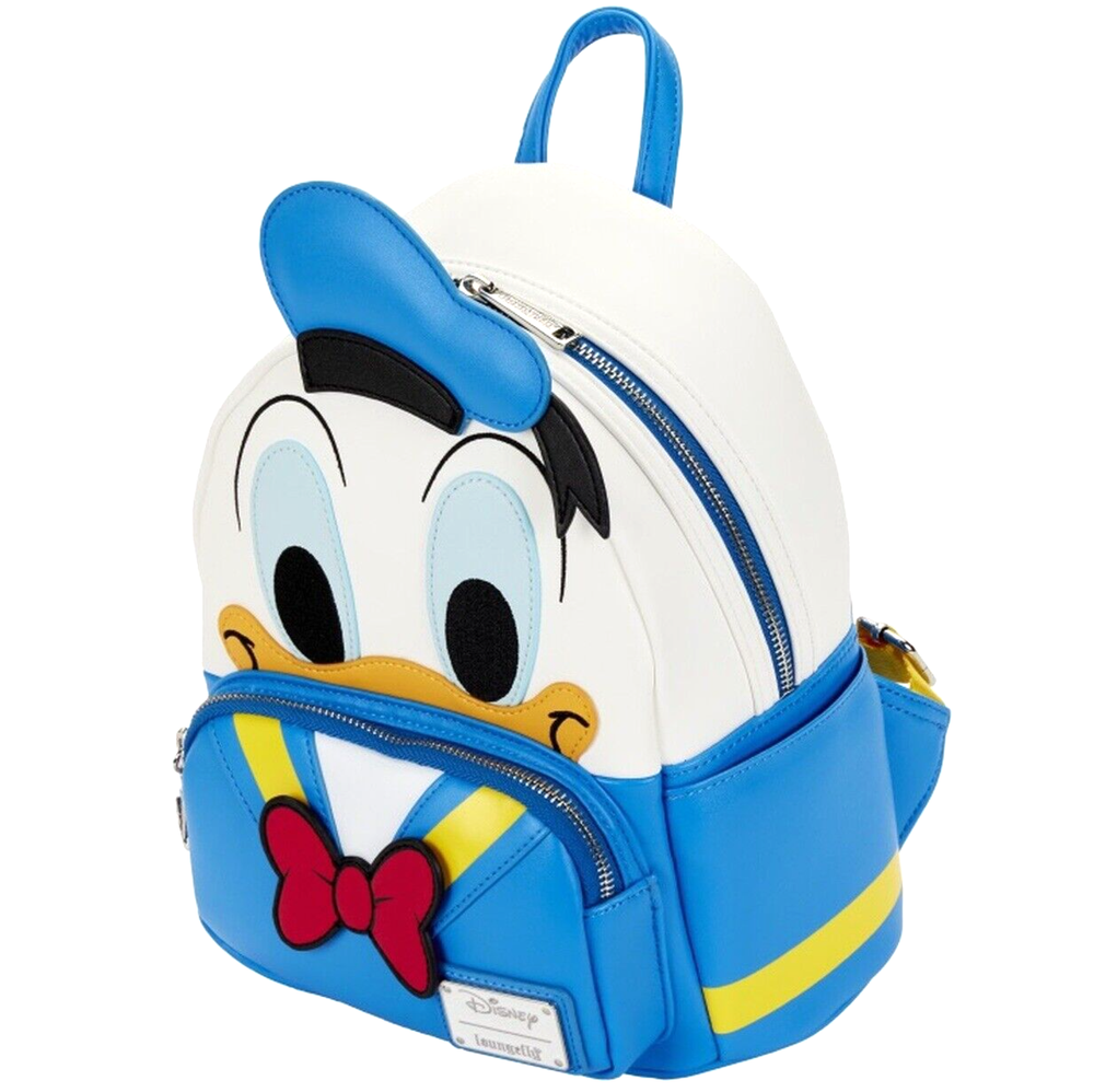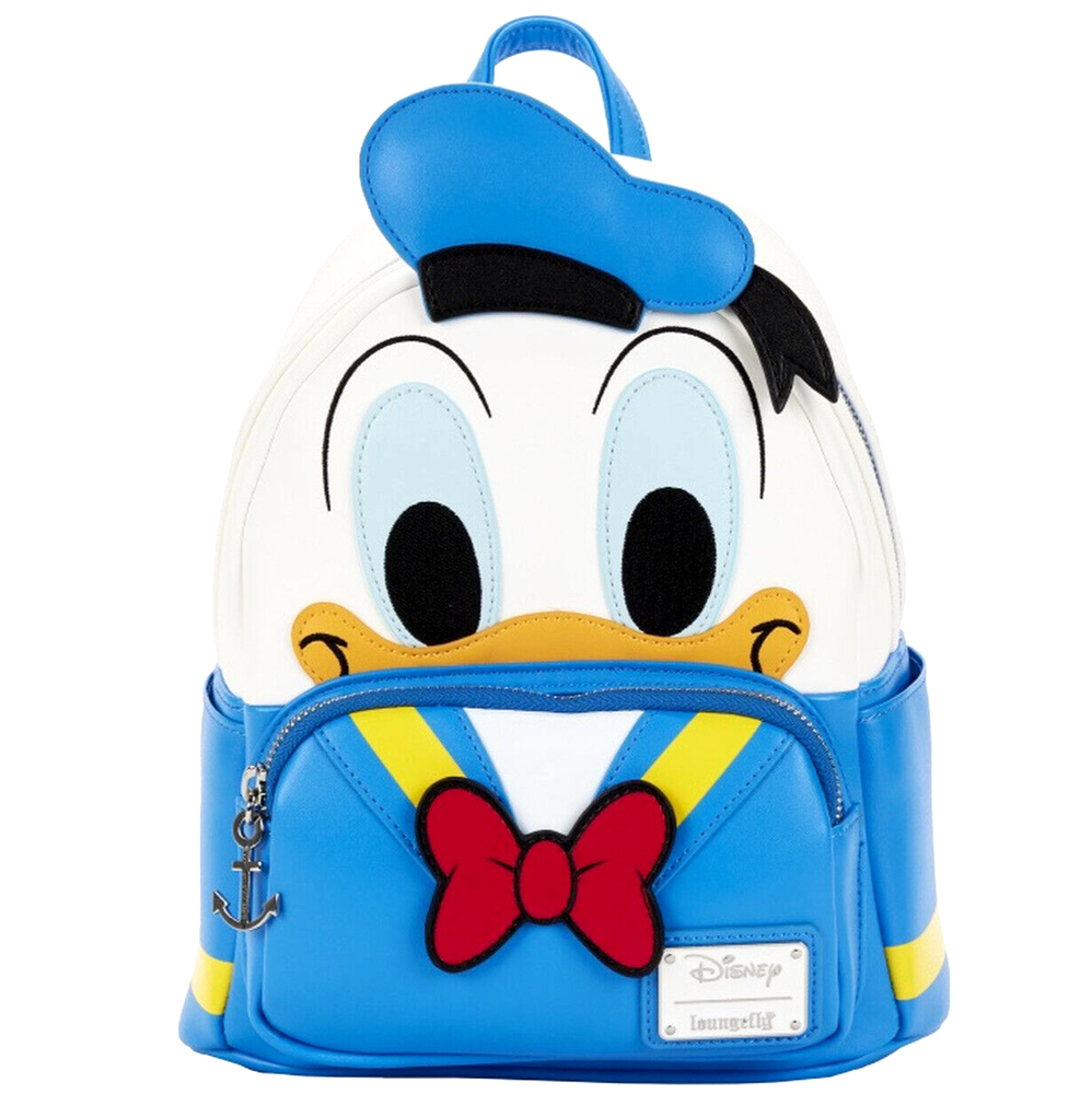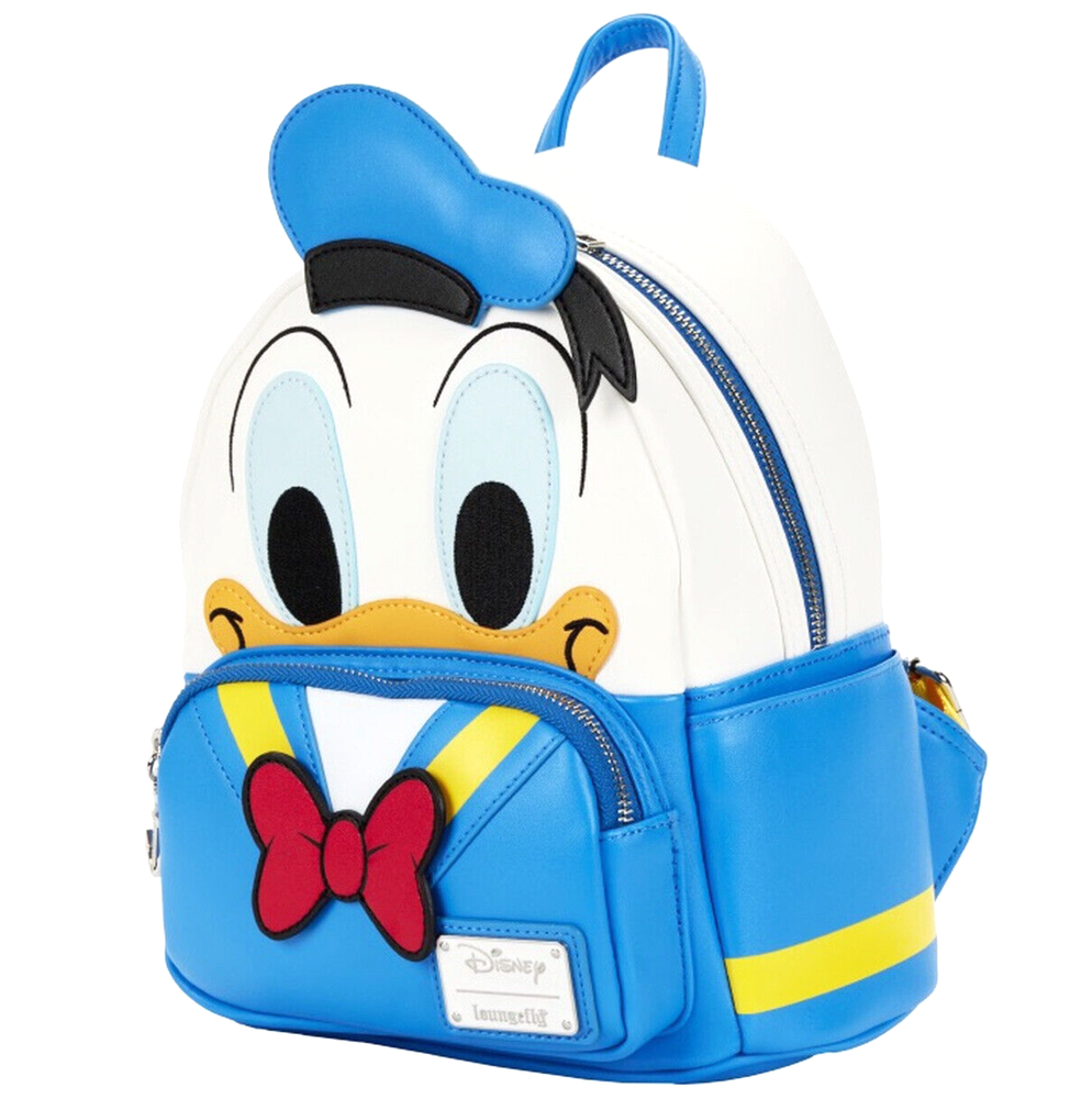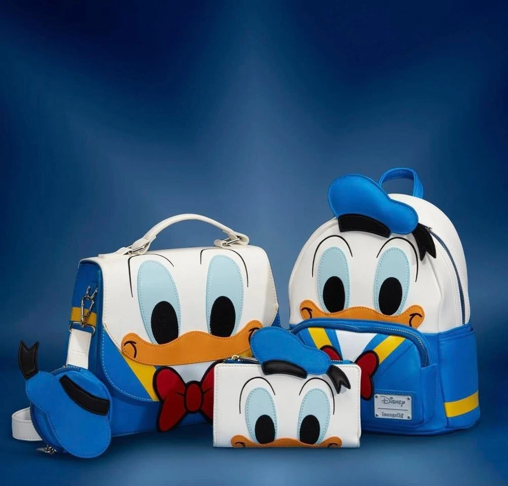 Brand new adorable backpack from Loungefly. Officially licensed Disney product. 100% Authentic. This is a very high quality fashion item. The actual item is a lot prettier than the photo! Boutique quality - buy with confidence! Donald Duck is coming in for a landing to ride with you on your next adventures with this Donald Duck Cosplay Mini Backpack. On the front of the bag, Donald Duck’s face peeks out over the front zipped compartment, which is accented by a bright red bow, with 3D details. The message on the back reads “Aw, Phooey!” This backpack is a great accent for any Disney outfit. Backpack features include shiny silver hardware, vegan leather (polyurethane), adjustable straps, side pockets, and applique, embroidered, printed, and zipper charm details. Note the coordinating lining. Brand New with Tag Adjustable padded shoulder straps Exterior front pocket and side pockets Approx. Measurement: 10" x 9" x 4.5" Matching wallet available - Sold Separately~~~ Shipping and Handling Fee: USA : $14.00 by USPS Standard Parcel (Priority Mail service is available for $20.00) All Other Countries : $35 .00 by USPS First Class International (or eBay Global Shipping Rate if applicable) Return Policy: All sales are final. Return will be accepted only if you received a wrong item. Please check out our eBay Store for other wonderful items! 2207 / 194 International Buyers – Please Note: Import duties, taxes, and charges are not included in the item price or shipping cost. These charges are the buyer's responsibility. Please check with your country's customs office to determine what these additional costs will be prior to bidding or buying.