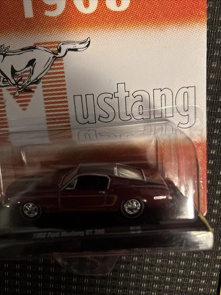 This product is a new M2 Machines 1968 Ford Mustang GT 390 car, accompanied by two hot wheels character cars and a Mickey Mouse figurine. The car is made of diecast material, has a black color, and is in a 1:64 scale. It features special edition and autographed aspects, with a recommended age range of 8+. The vehicle make is Ford, and it falls under the categories of Toys & Hobbies, Diecast & Toy Vehicles, and Contemporary Manufacture.