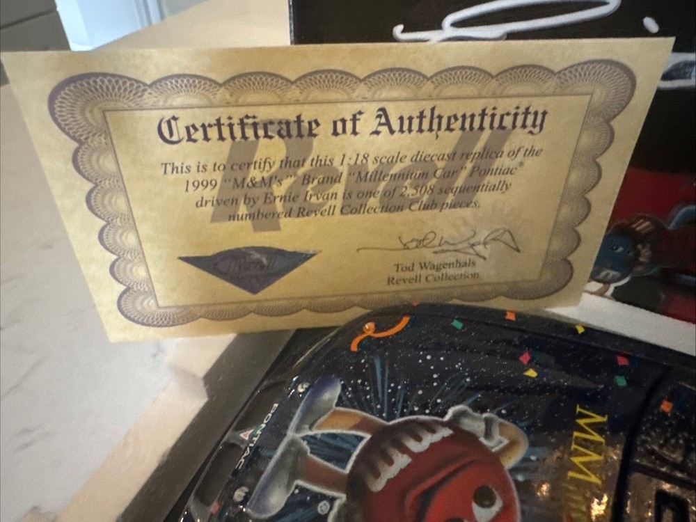 New M&Ms ERNIE IRVAN #36 Die Cast Race Car 1999 with COA