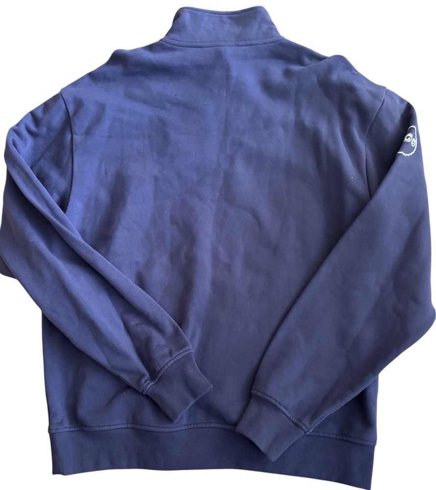 Brand New MALBON GOLF Collegiate Golf Pullover in Navy Great quarter-zip sweatshirt crafted from 100% soft cotton, designed for both casual wear and technical golf performance. Features white embroidered script on the left chest and a signature logo on the right sleeve. Includes ribbed cuffs and hem to ensure a secure fit. Styled as an everyday comfort layer with a functional quarter-zip mock neck Navy Men's size L * Made in the USA – Ensures premium craftsmanship. 100% AUTHENTIC