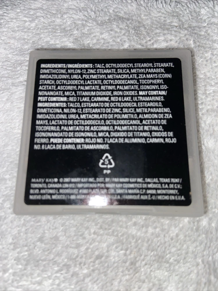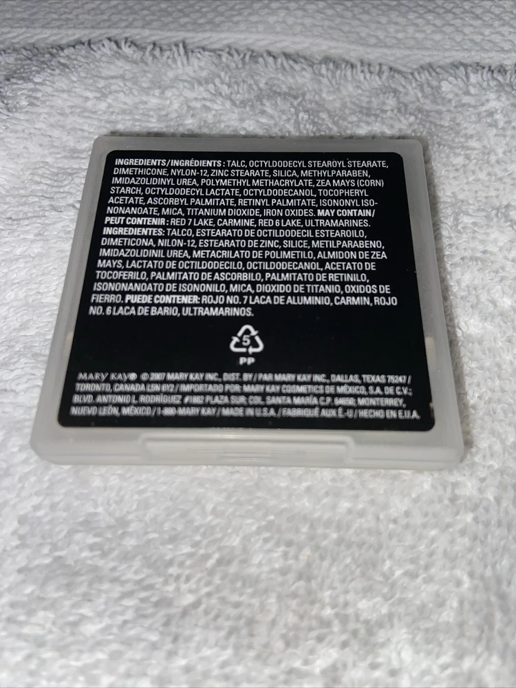 Period After Opening (PAO):24MBrand:Mary KayType:BlushProduct Line:Mineral Cheek ColorFeatures:Long LastingActive Ingredients:TalcDepartment:WomenSize:Full SizeSkin Type:AllEffect:ShimmerShade:Sparkling CiderFormulation:Pressed Powder, Baked PowderCountry/Region of Manufacture:United StatesModel:Mary Kay Blush 012974MPN:012974Scent:UnscentedVolume:.18 oz
