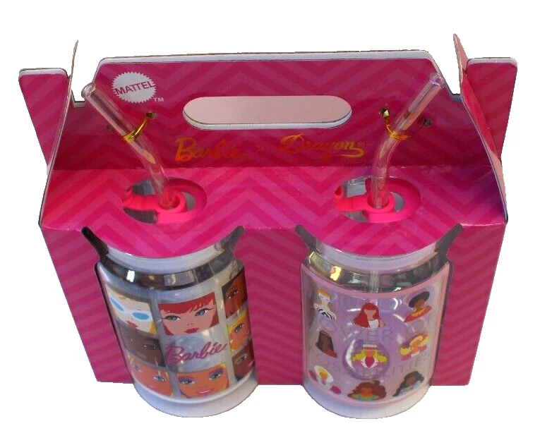 New Mattel Barbie X Drago Glass Drinking Cup W/ Lid Glassware Tumblers Set